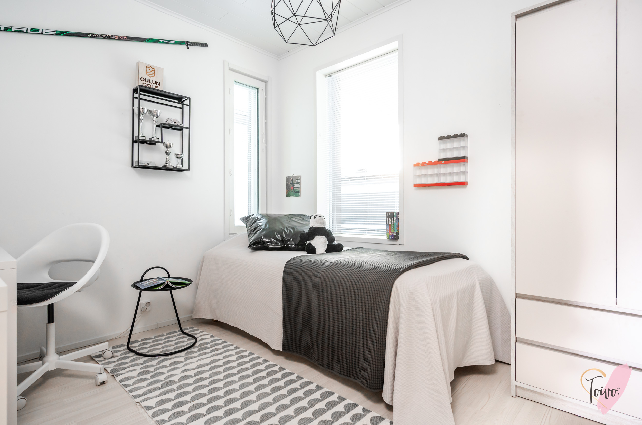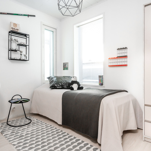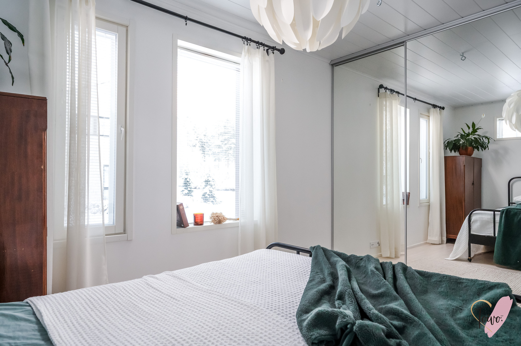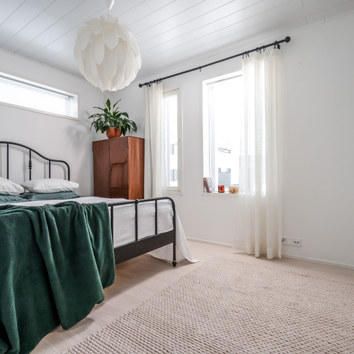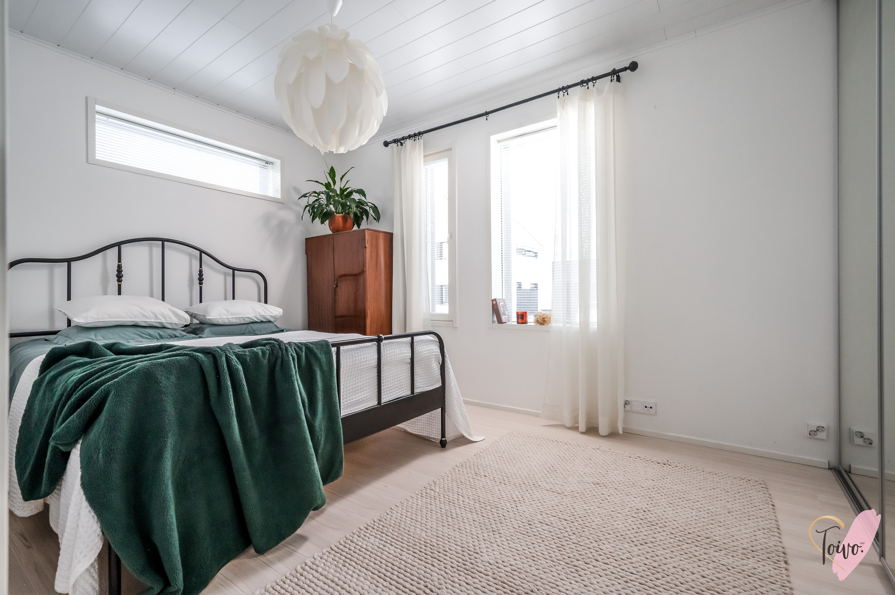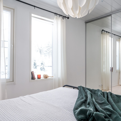 Kodissa on kolme makuuhuonetta, jotka kaikki ovat hyvän kokoisia ja selkeitä tilaratkaisuiltaan. Kaksi huoneista sijoittuu olohuoneen ja ruokailutilan läheisyyteen ja joissa molemmissa löytyy säilytystilaa liukupeiliovien takaa. Kolmas makuuhuone sijaitsee kätevästi muista erillään lähellä sisäänkäyntiä.