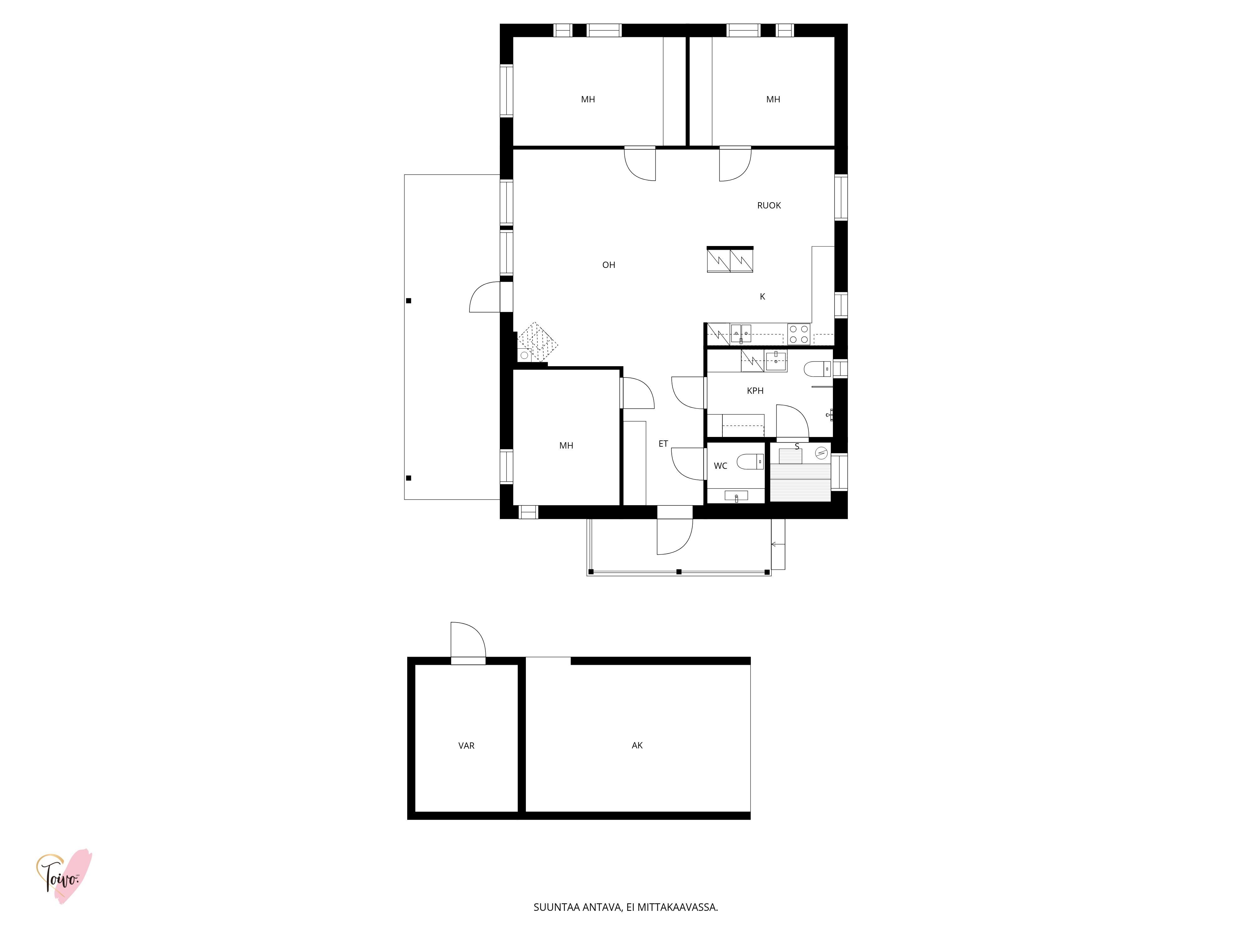 Lämmönjakotapa: sähköinen lattialämmitys, uuni/takka