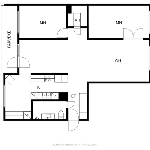 Halutessaan keittiöön mahtuu hyvin myös vaikka aamiaispöytä.
