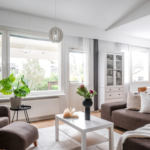 Tämä rivitalon päätyhuoneisto Siipipeilintie 9:ssä hurmaa selkeällä pohjaratkaisullaan ja tyylikkäällä kokonaisuudellaan. Vuonna 2005 rakennetussa yhtiössä sijaitseva koti on läpikäynyt kattavan remontin vuonna 2024. Keittiö ja kylpyhuone kodinhoitotiloineen on päivitetty nykypäivään, joten muuttamaan pääset ilman remonttipaineita.