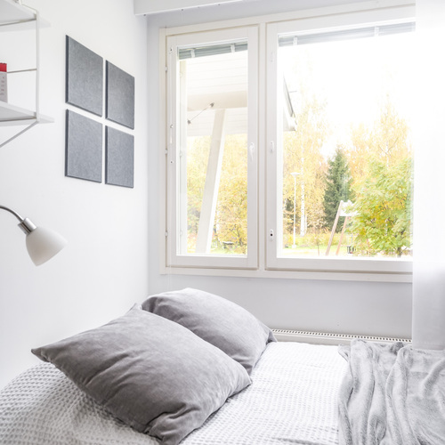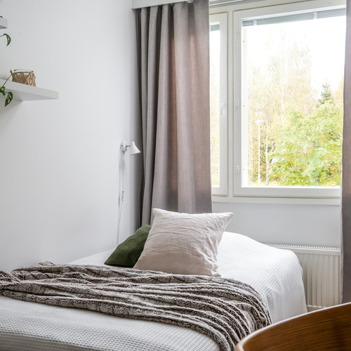 Varusteet: sälekaihtimet/rullaverhot, huoneistokohtainen ilmanvaihtokone