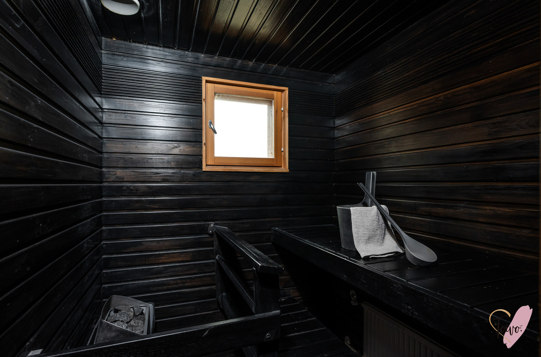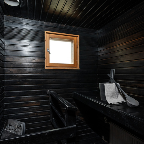 SähkökiuasMustan saunan lämpöön on ihana mennä rentoutumaan kiireisen päivän jälkeen.