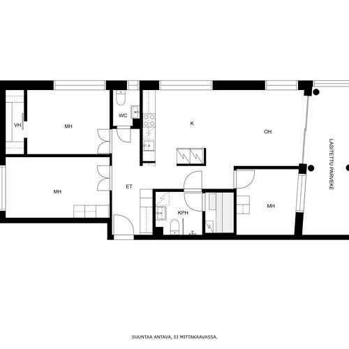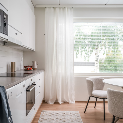 Varusteet: liesituuletin, mikroaaltouuni, astianpesukone, irralliset saarekkeet