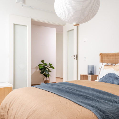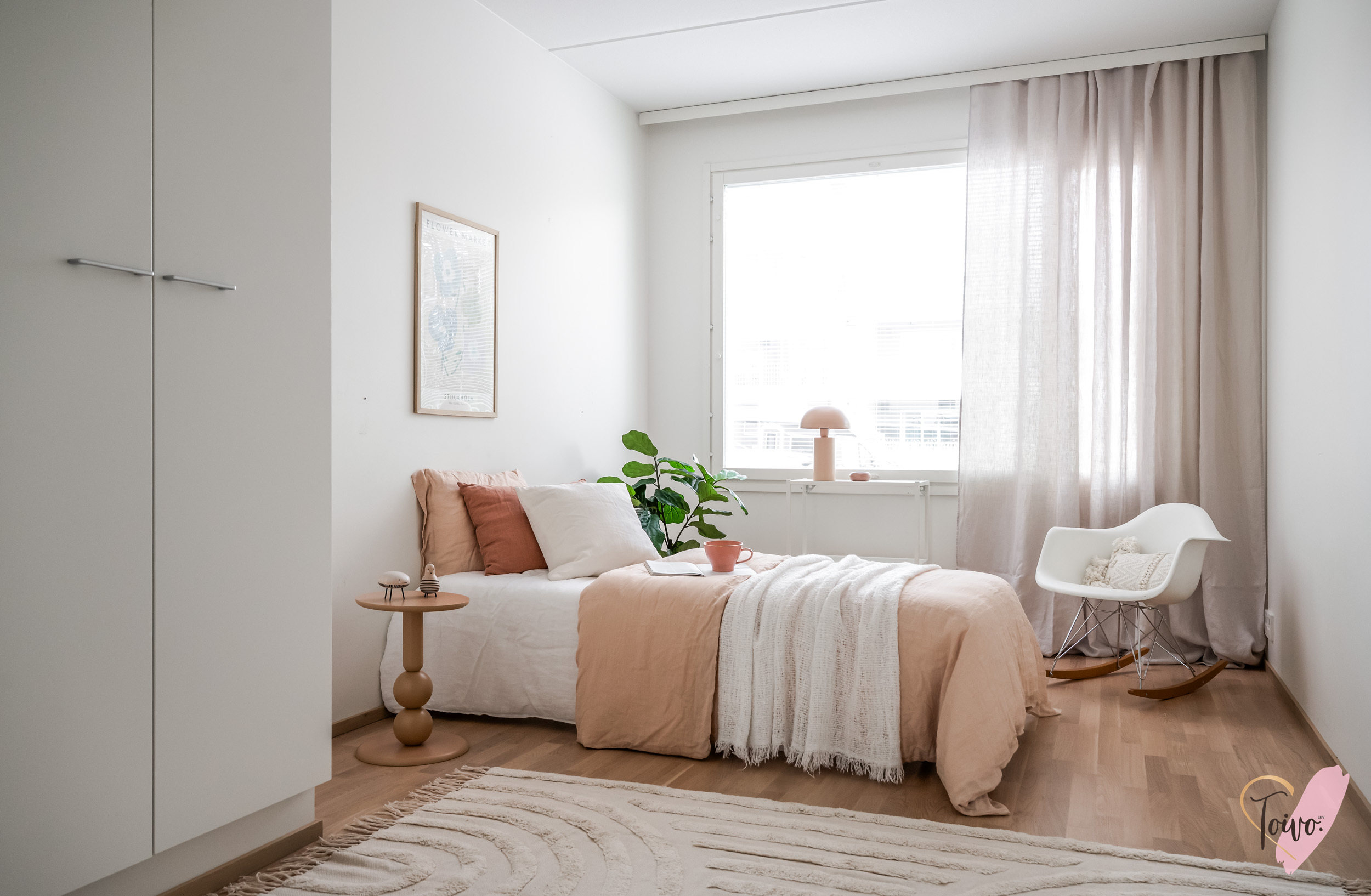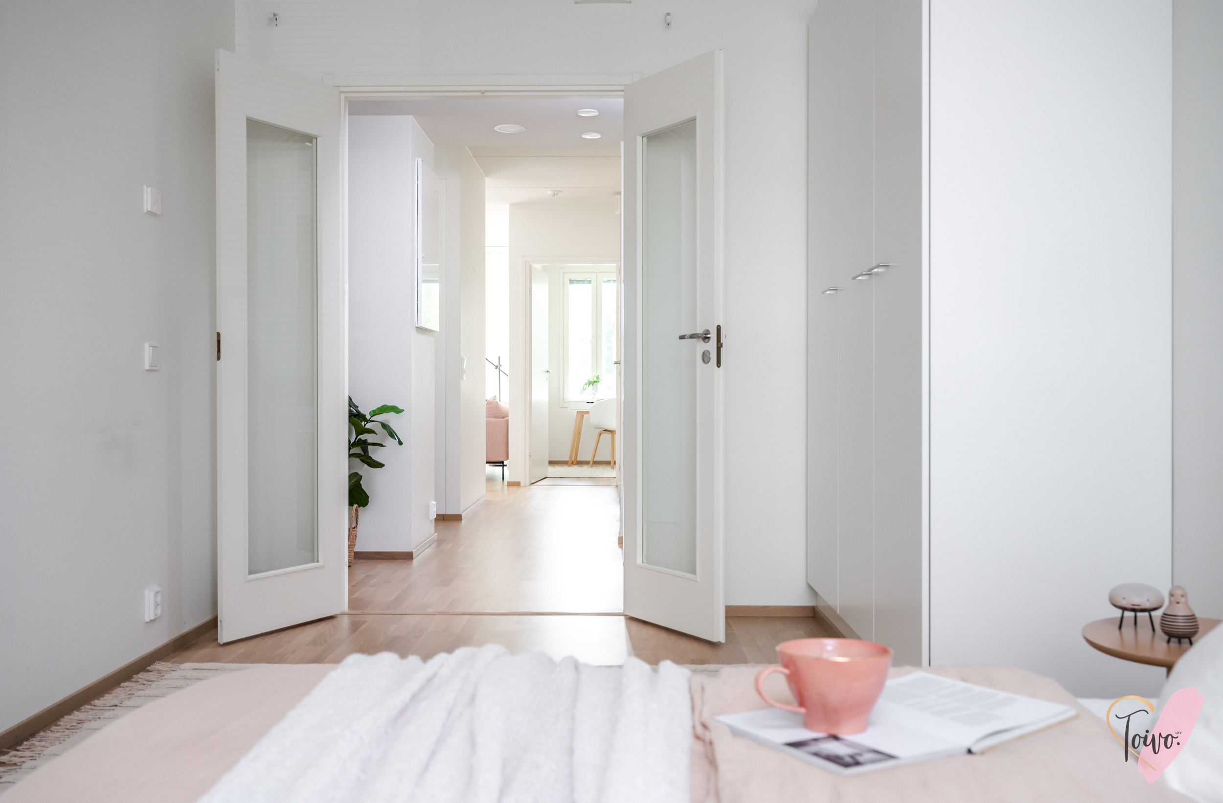Heti eteisen viereen, rauhallisen sisäpihan puolelle sijoittuvat kodin kaksi suurempaa makuuhuonetta, joihin kuljetaan kauniiden pariovien kautta. Toisen makuuhuoneen yhteydessä on tilava vaatehuone, joka tekee huoneesta helposti sisustettavan juuri oman makusi mukaan, vaikka kodin päämakuuhuoneeksi tai lastenhuoneeksi. Toisessa taas on yhtä hulppeasti tilaa ja kaapisto vaatesäilytykseen. Kolmas makuuhuone taas sijoittuu olohuoneen viereen ja näin saa oman erityisen luonteensa rantamaisemista.