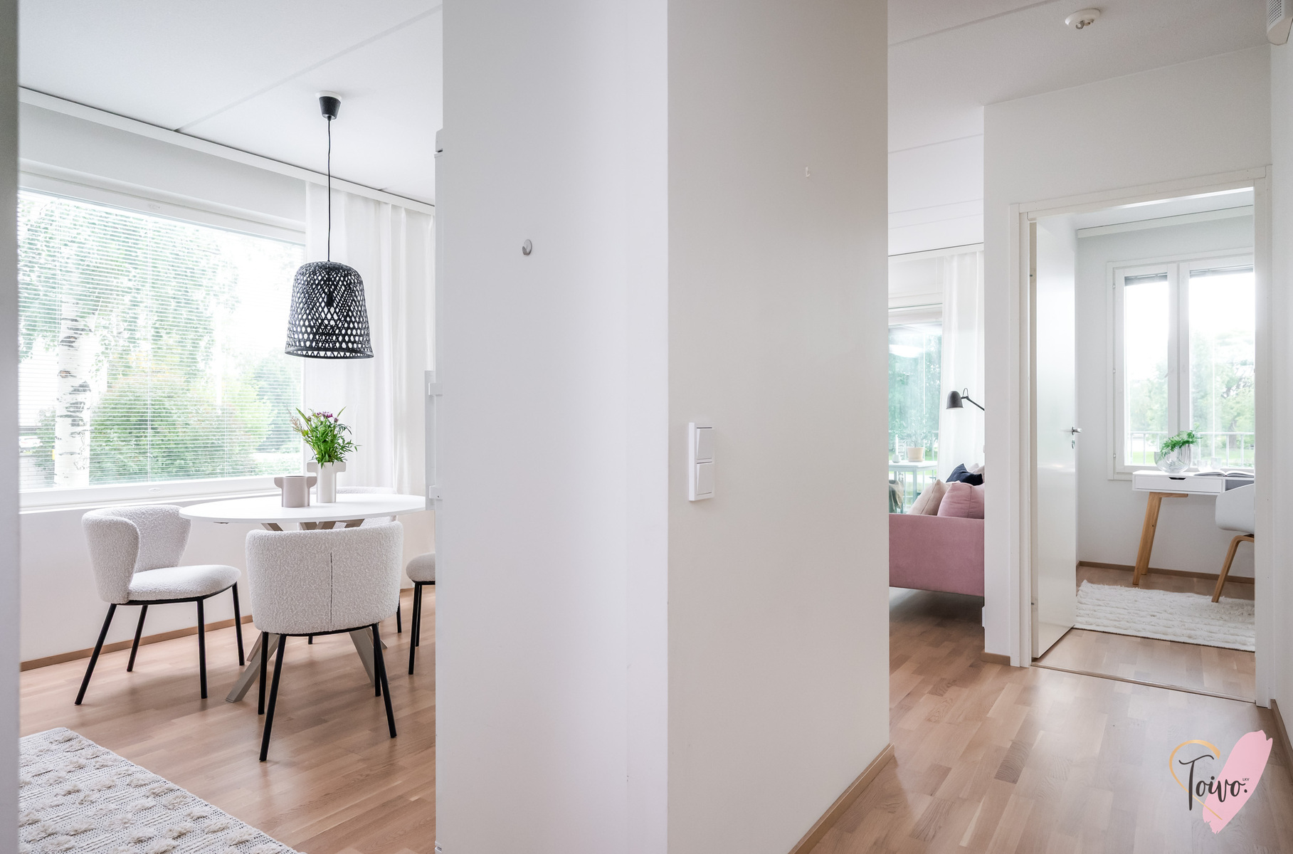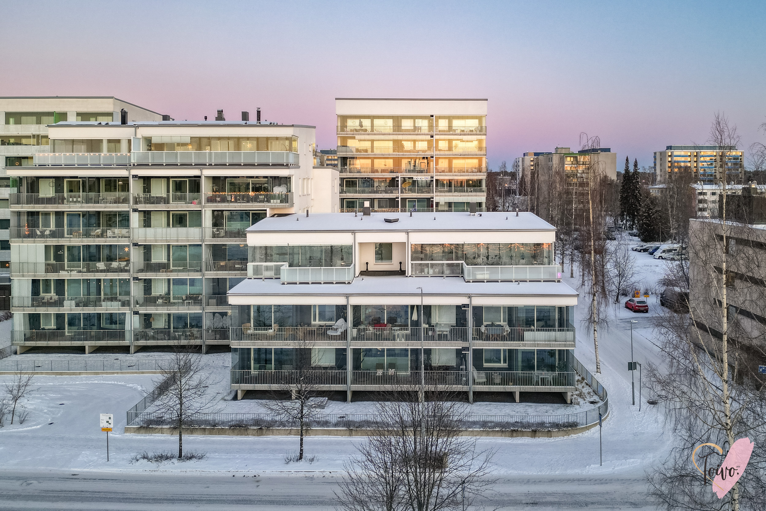 Kauneuden keskellä, Oulujoen ja rantapuiston vehreyden äärellä odottaa koti, jossa avara valoisuus ja harmoninen skandinaavinen tyyli yhdistyvät. Koti, joka tarjoaa sinulle ainutlaatuisen yhdistelmän kaupunkiasumisen parhaita puolia. Täällä valo tulvii sisään suurista ikkunoista ja lasitetulta parvekkeelta avautuu ihailtavaksesi jokinäkymä. Maisema on kuin muuttuva taulu, joka seuraa vuodenaikojen rytmiä.