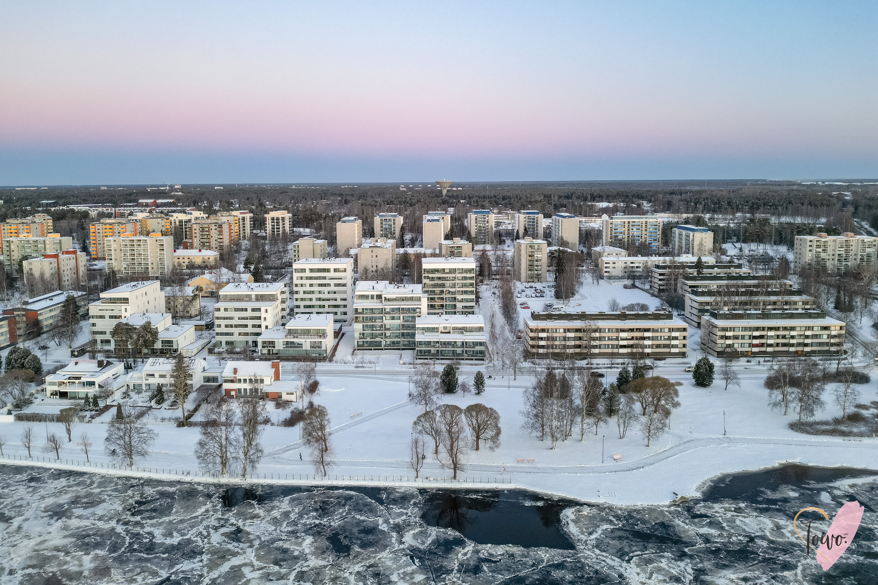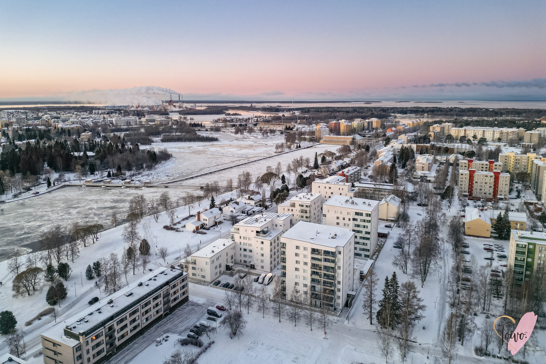 Sijainti on erityisen viehättävä. Kodin ympärillä vallitsee puistomainen rauha ja Oulujoen ainutlaatuinen maisema, mutta samalla erinomaiset kulkuyhteydet vievät sujuvasti niin keskustaan kuin kaupungin muihin osiin. Täällä voi nauttia kiireettömästä jokimaisemasta, vaikka palvelut ja liikenneyhteydet ovat aivan lähellä.