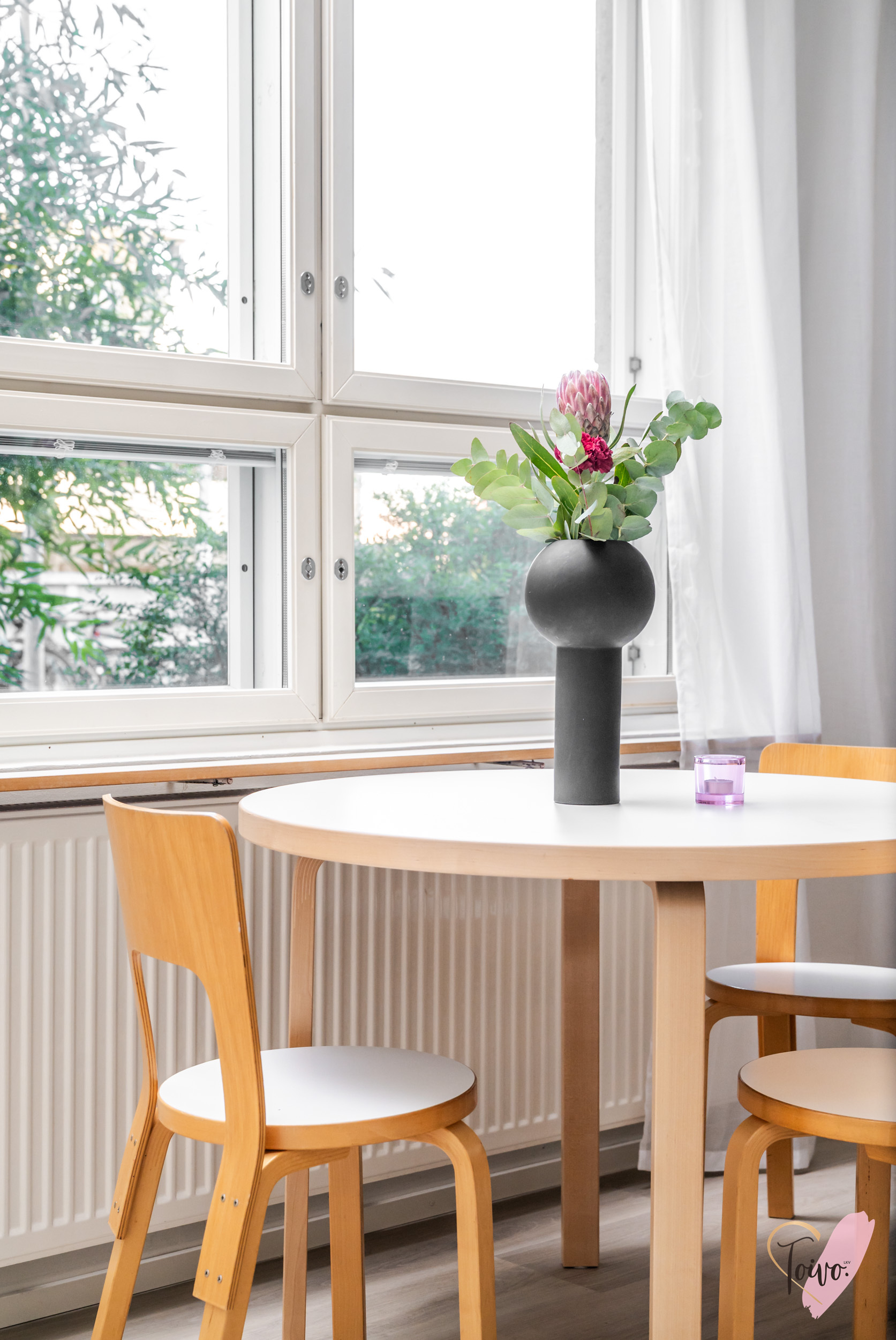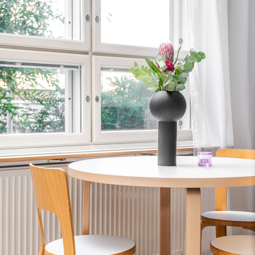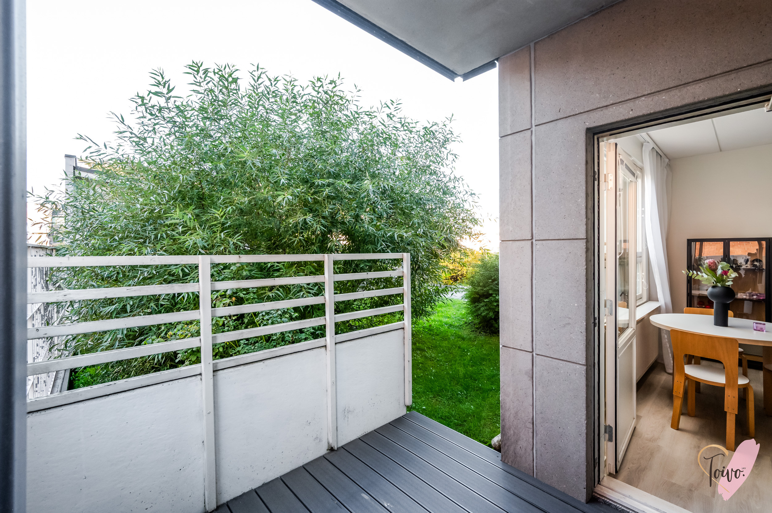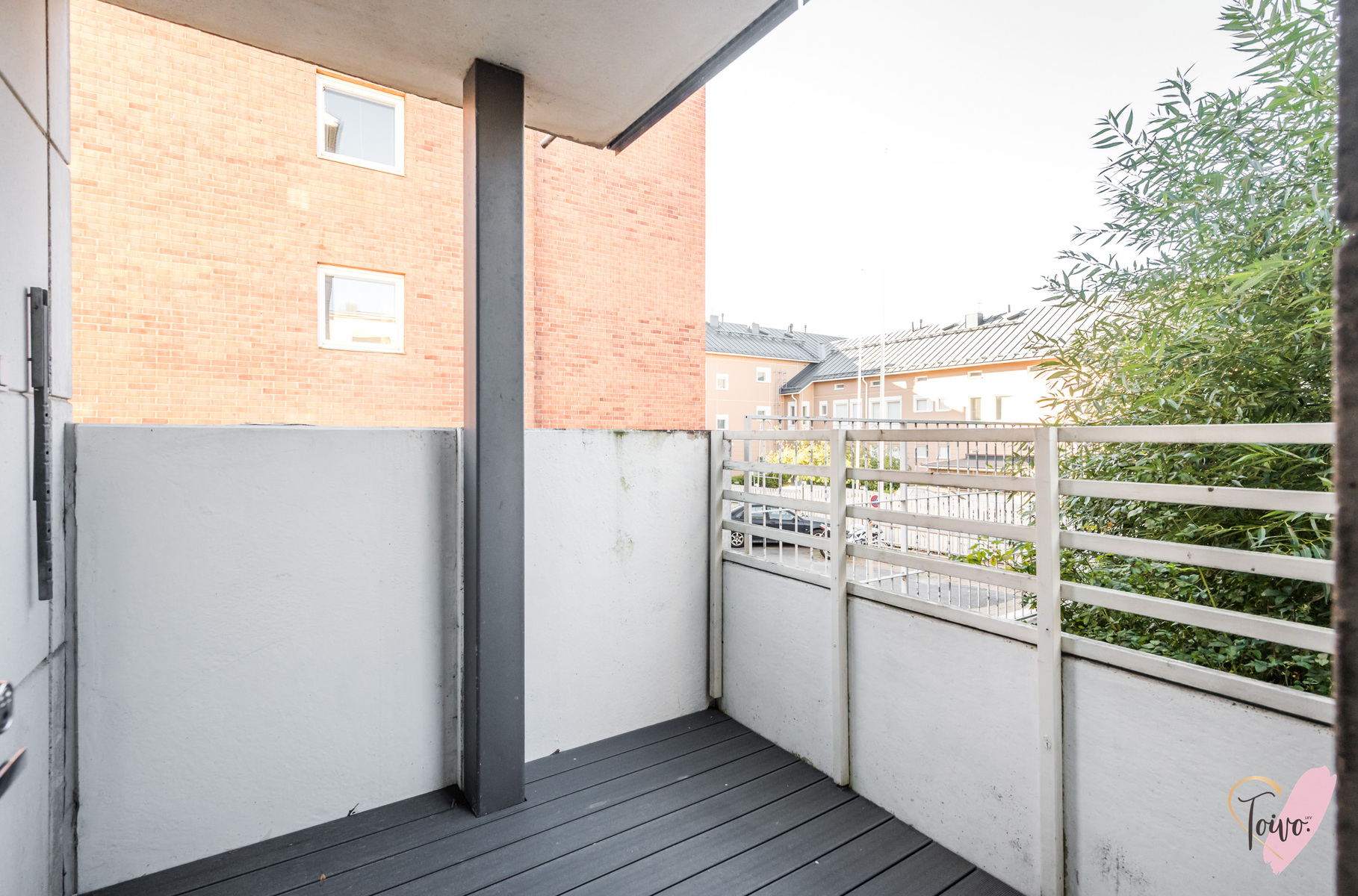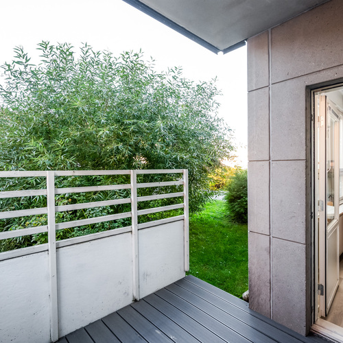 Tilava parveke toimii erinomaisena lisähuoneena kesäsäillä. Parvekkeella on ihanaa nauttia aamukahvi tai rentoutua illalla kaupungin sykkeen hiljalleen rauhoittuessa.