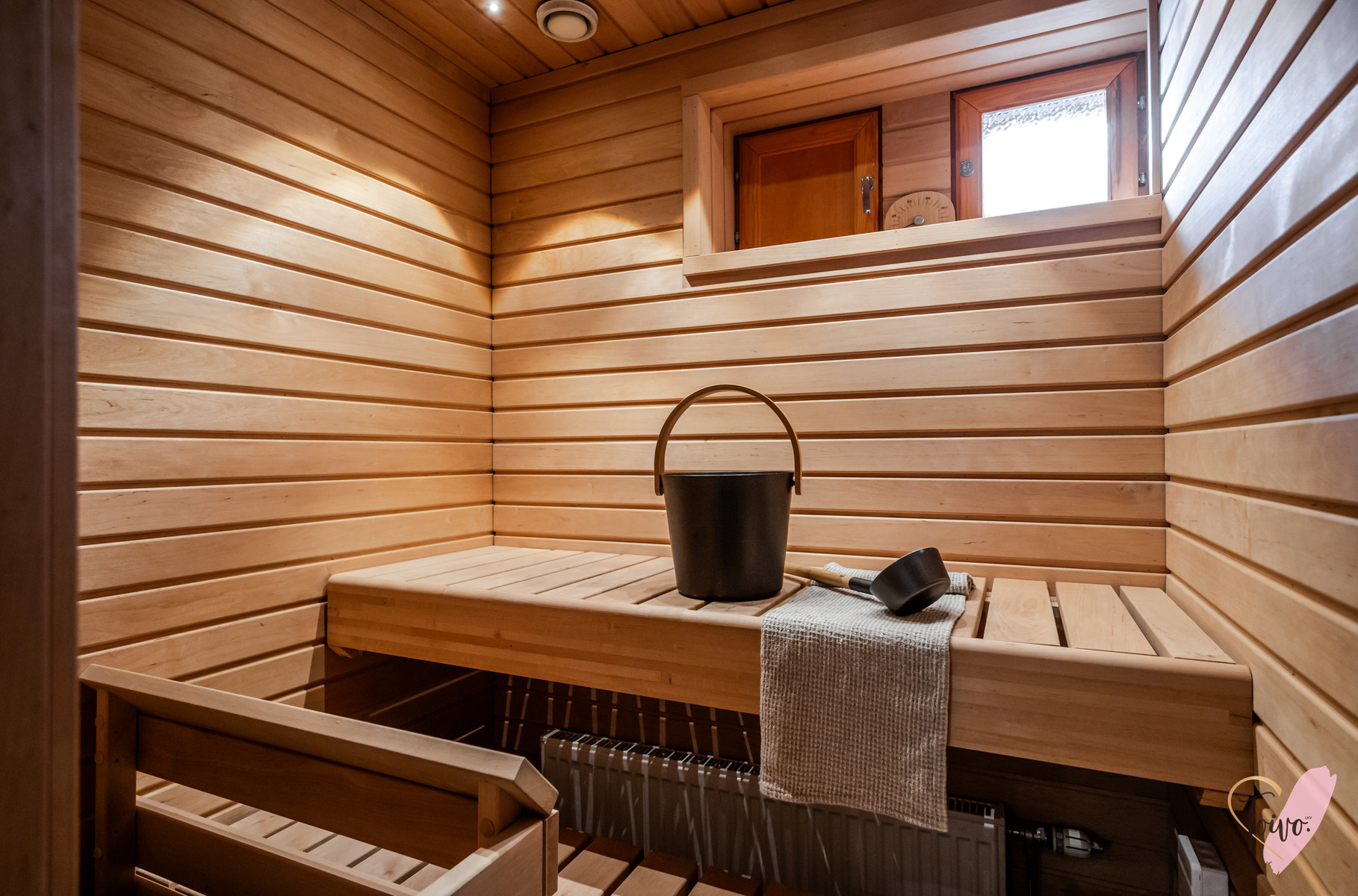 SähkökiuasOman saunan lämmössä on ihana rentoutua. Pieni ikkuna päästää myös kivasti luonnonvaloa saunaan.