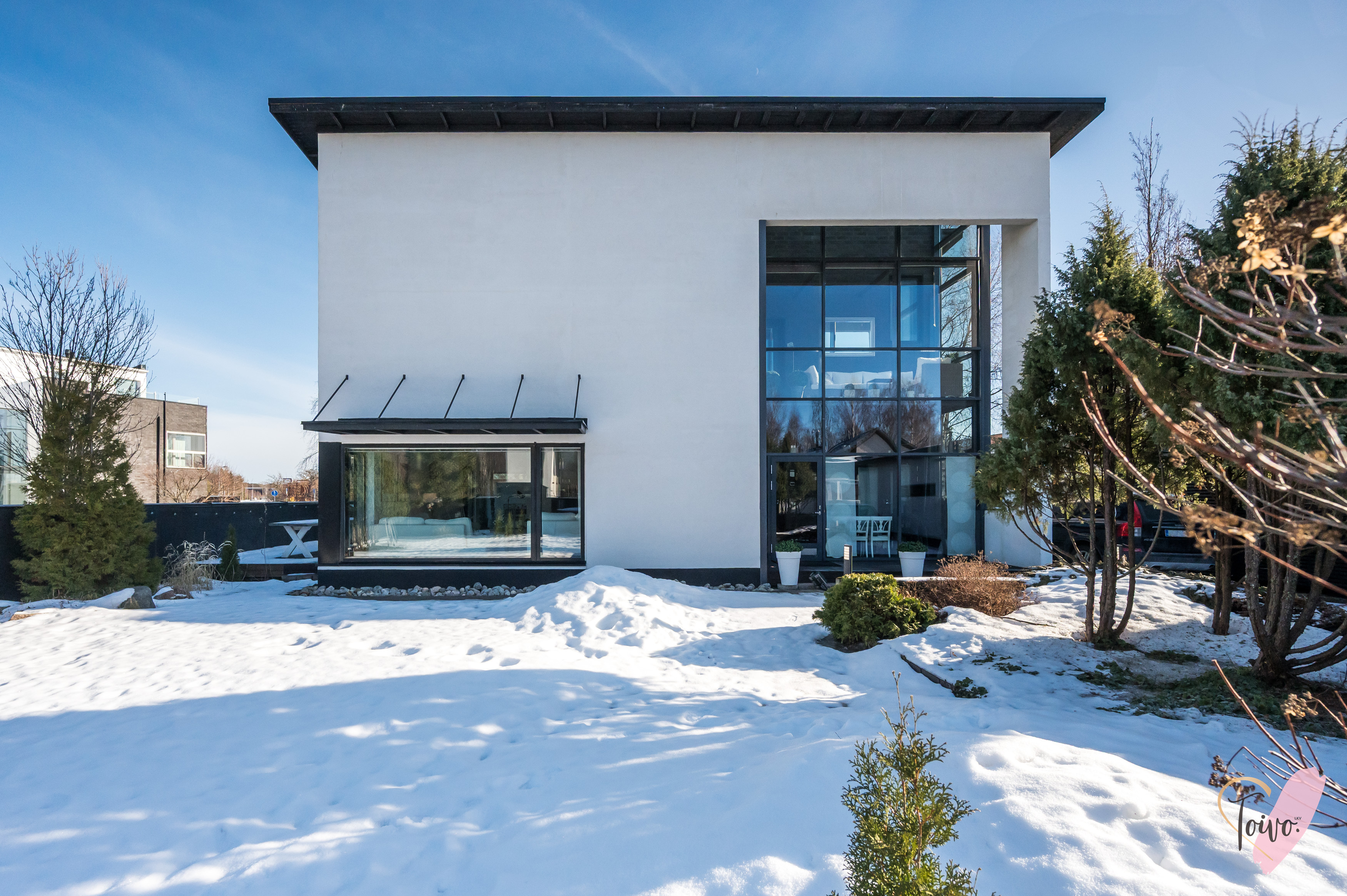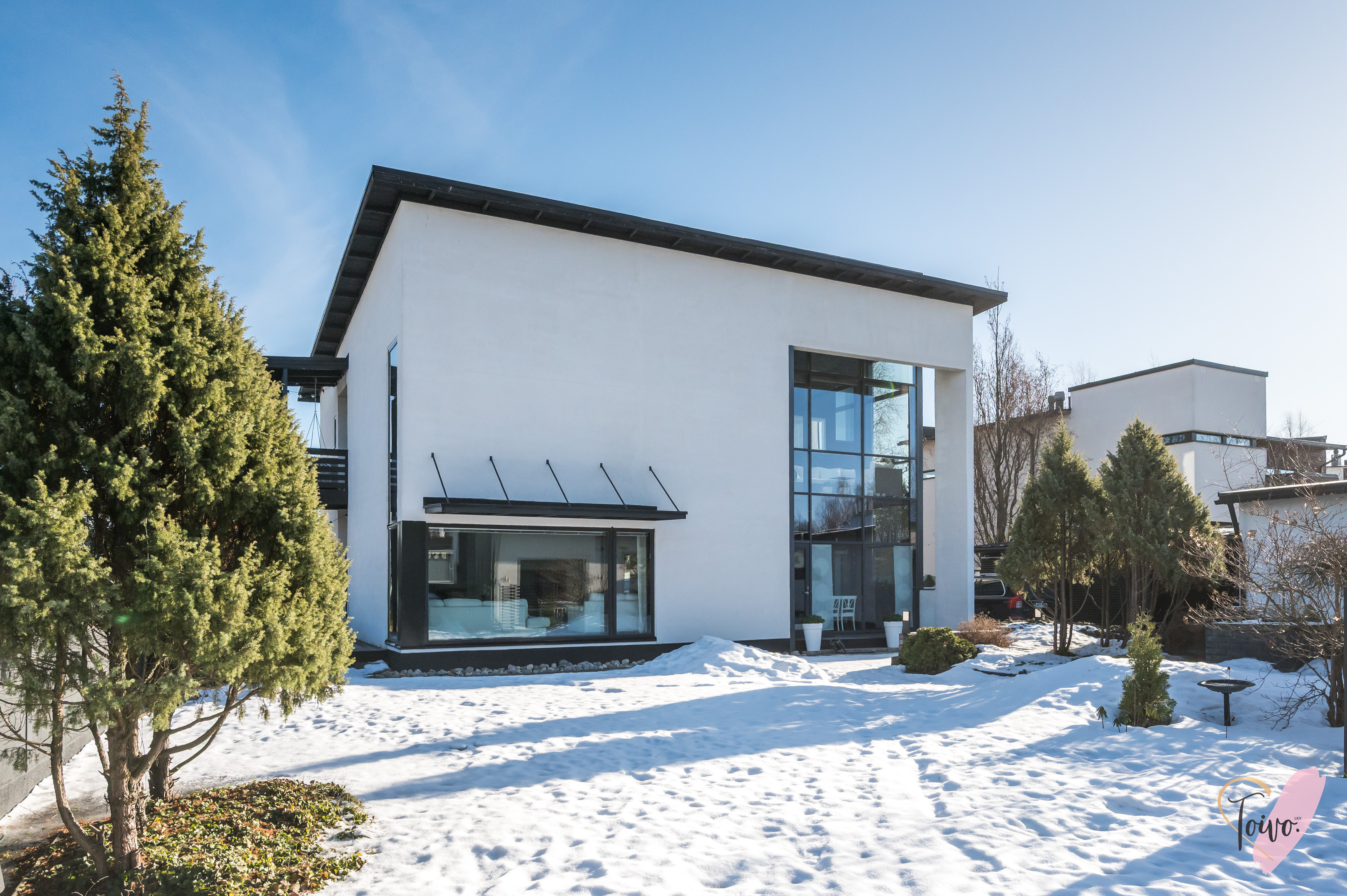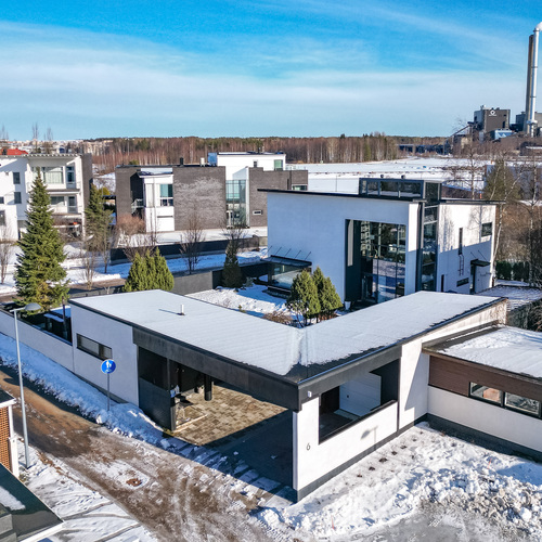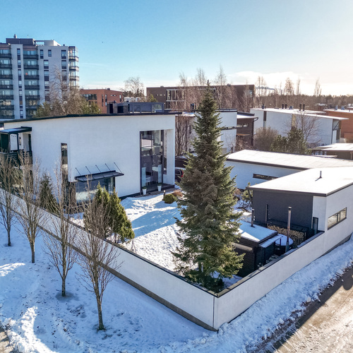 Heti sisään astuessasi lasikuisti vastaanottaa asukkaat ja vieraat ja huomaat, kuinka valo ja avaruus täyttävät kodin jo eteisestä lähtien. Alakerran tilava olohuone hurmaa 6,70 m huonekorkeudellaan ja isolla ikkunalla, joka avautuu omalle suojaisalle pihalle. Olohuoneen tunnelmaa täydentää kaunis takka, joka tuo lämpöä ja kotoisuutta kylminä iltoina. Olohuone on poikkeuksellisen muunneltava tila, jossa sisustuksen voi toteuttaa juuri omien tarpeiden ja mieltymysten mukaan mieluisaksi.