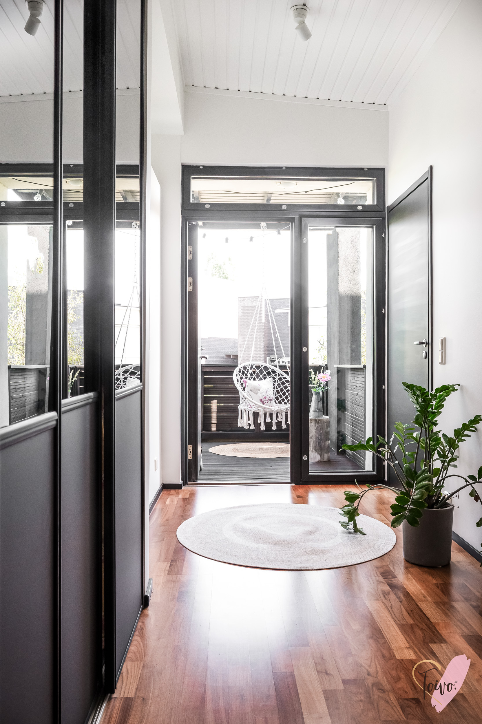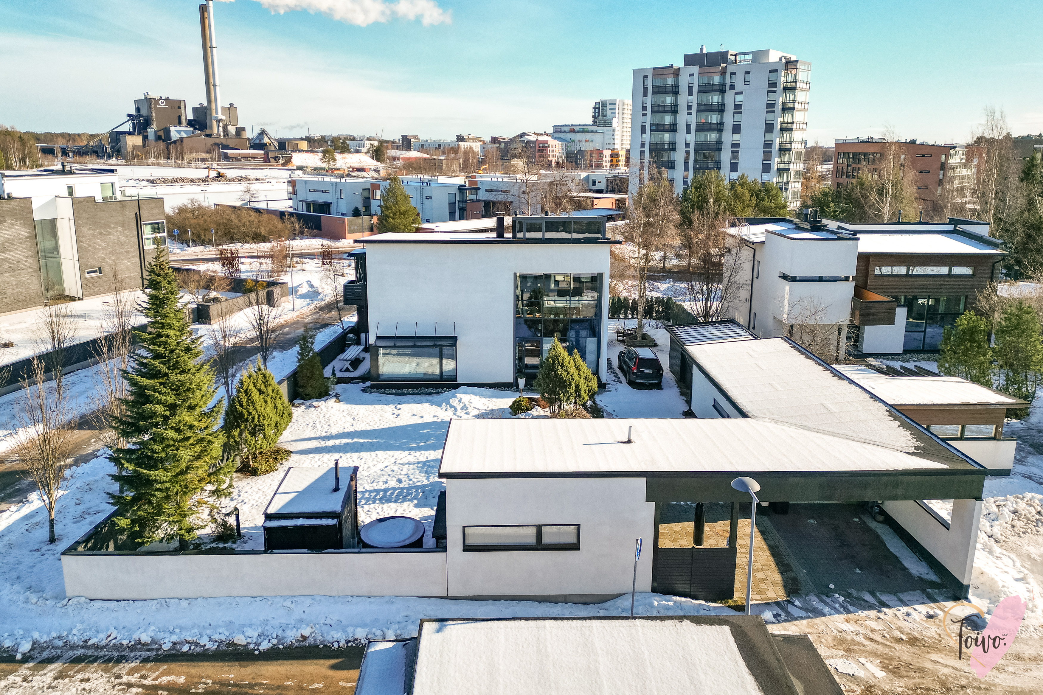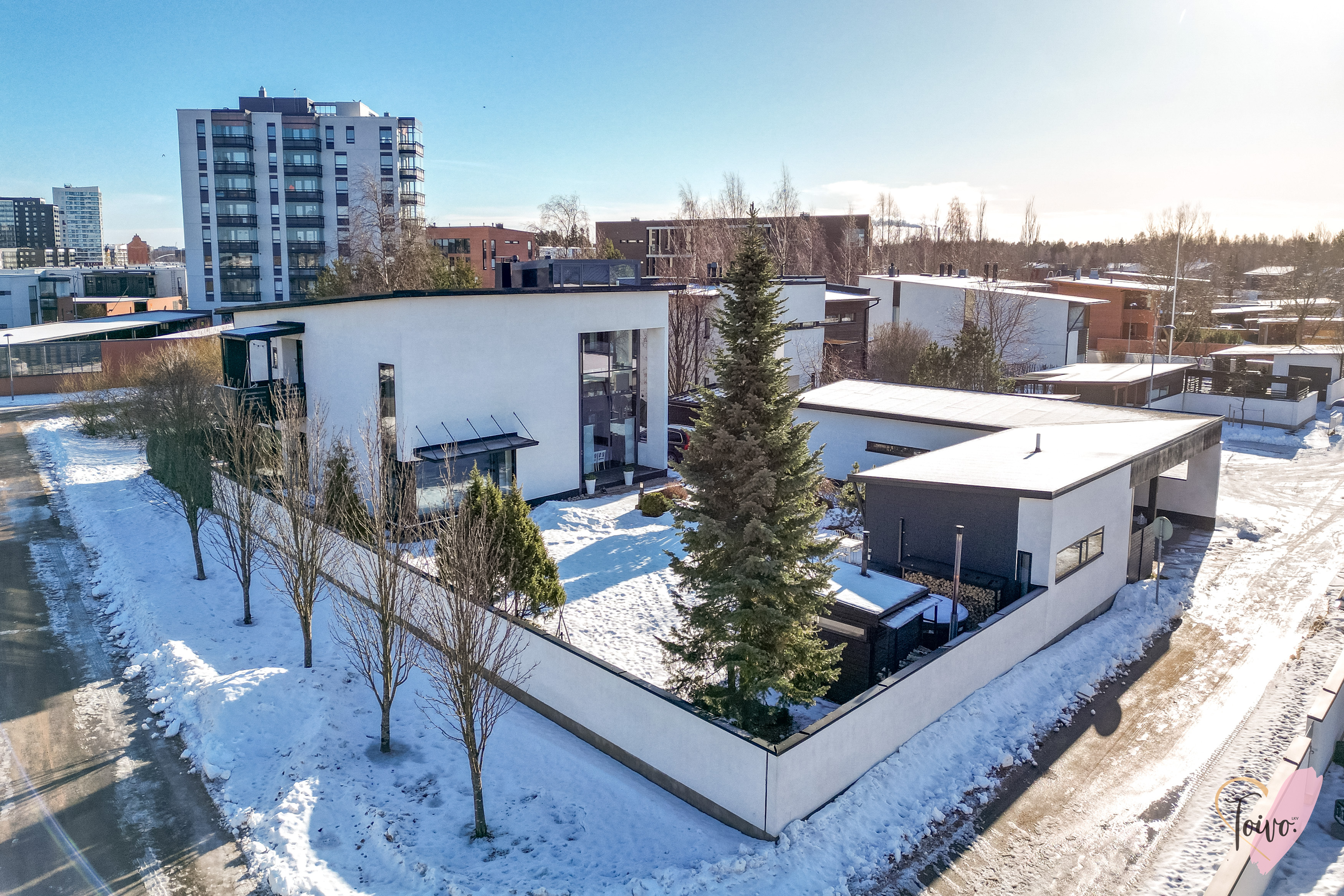Heti sisään astuessasi lasikuisti vastaanottaa asukkaat ja vieraat ja huomaat, kuinka valo ja avaruus täyttävät kodin jo eteisestä lähtien. Alakerran tilava olohuone hurmaa 6,70 m huonekorkeudellaan ja isolla ikkunalla, joka avautuu omalle suojaisalle pihalle. Olohuoneen tunnelmaa täydentää kaunis takka, joka tuo lämpöä ja kotoisuutta kylminä iltoina. Olohuone on poikkeuksellisen muunneltava tila, jossa sisustuksen voi toteuttaa juuri omien tarpeiden ja mieltymysten mukaan mieluisaksi.