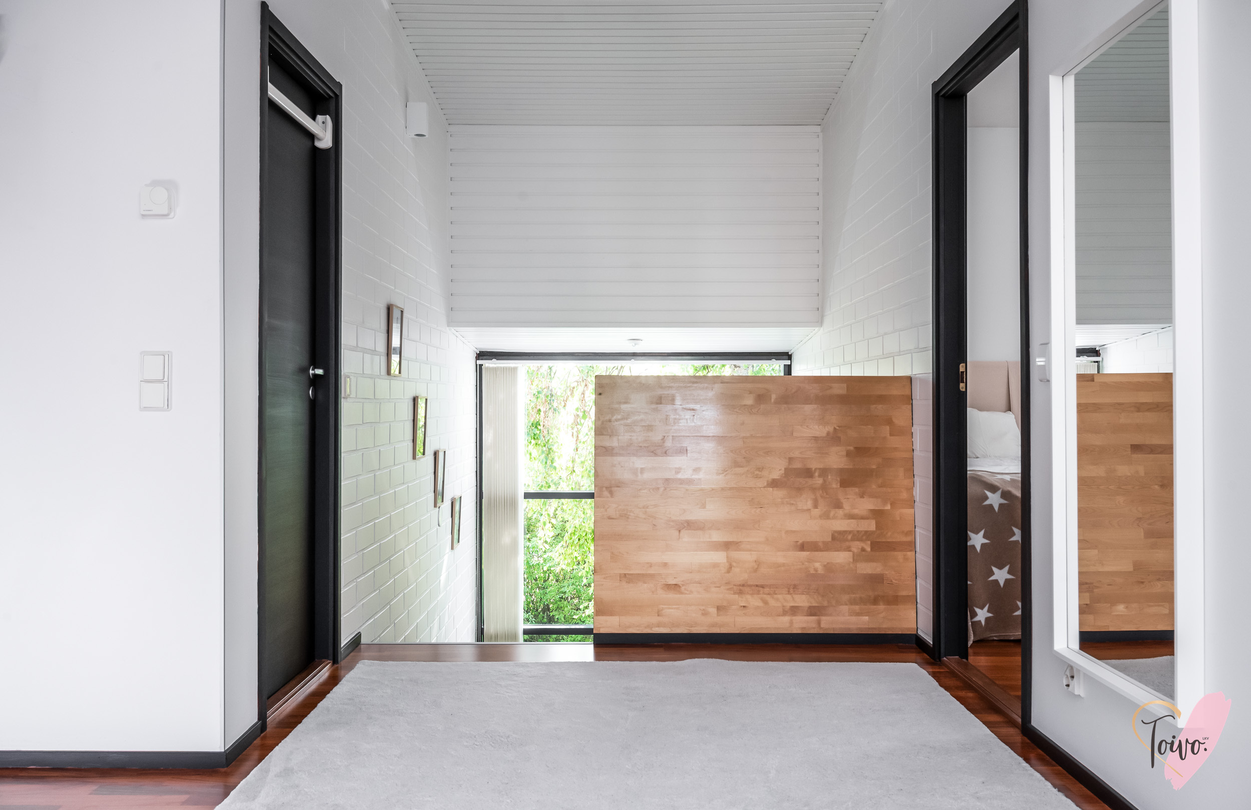 Yläkerrassa: pähkinäpuuparketti