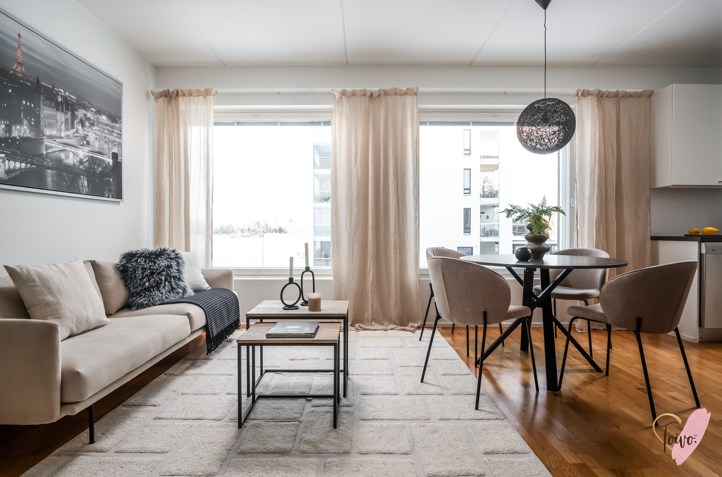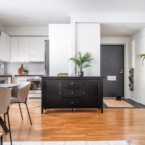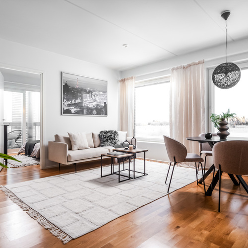 Tämä 61-neliöinen koti on todella toimiva pohjainen ja oivallinen yhdistelmä tyylikkyyttä, toimivuutta ja viihtyisyyttä.