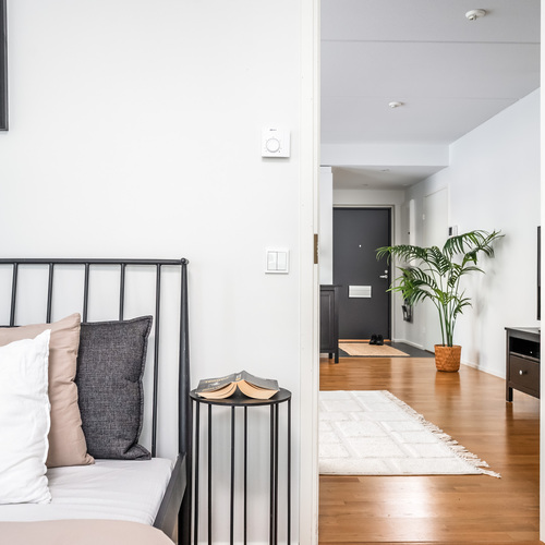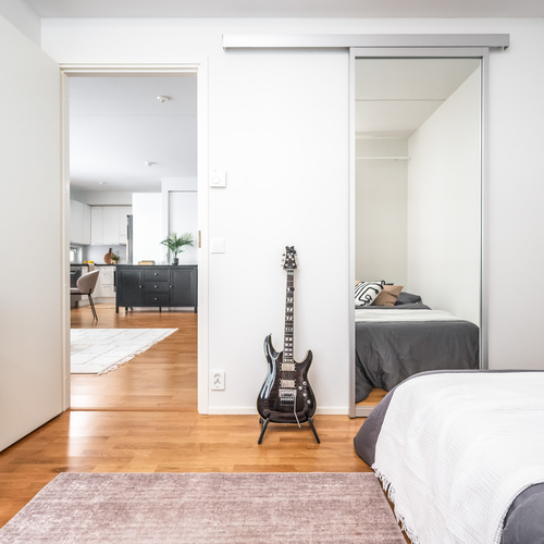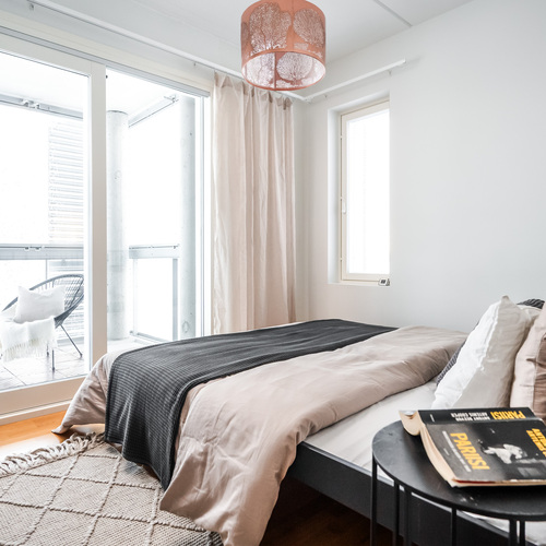 Kodin molemmat makuuhuoneet tarjoavat mukavasti tilaa ja säilytysratkaisuja. Toisessa makuuhuoneessa on käytännöllinen vaatehuone liukuoven takana, kun taas toisesta on käynti Profinin liukulasiseimän kautta lasitetulle parvekkeelle. Tälle reilun kokoiselle parvekkeelle ilta-aurinko tuo lämpöä ja valoa pitkälle syksyyn saakka, tarjoten täydellisen paikan rentoutua ja nauttia merituulen vireestä.
