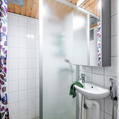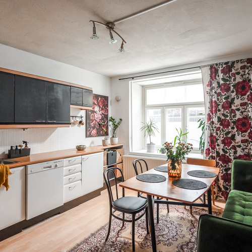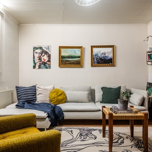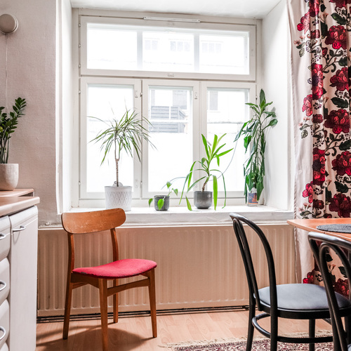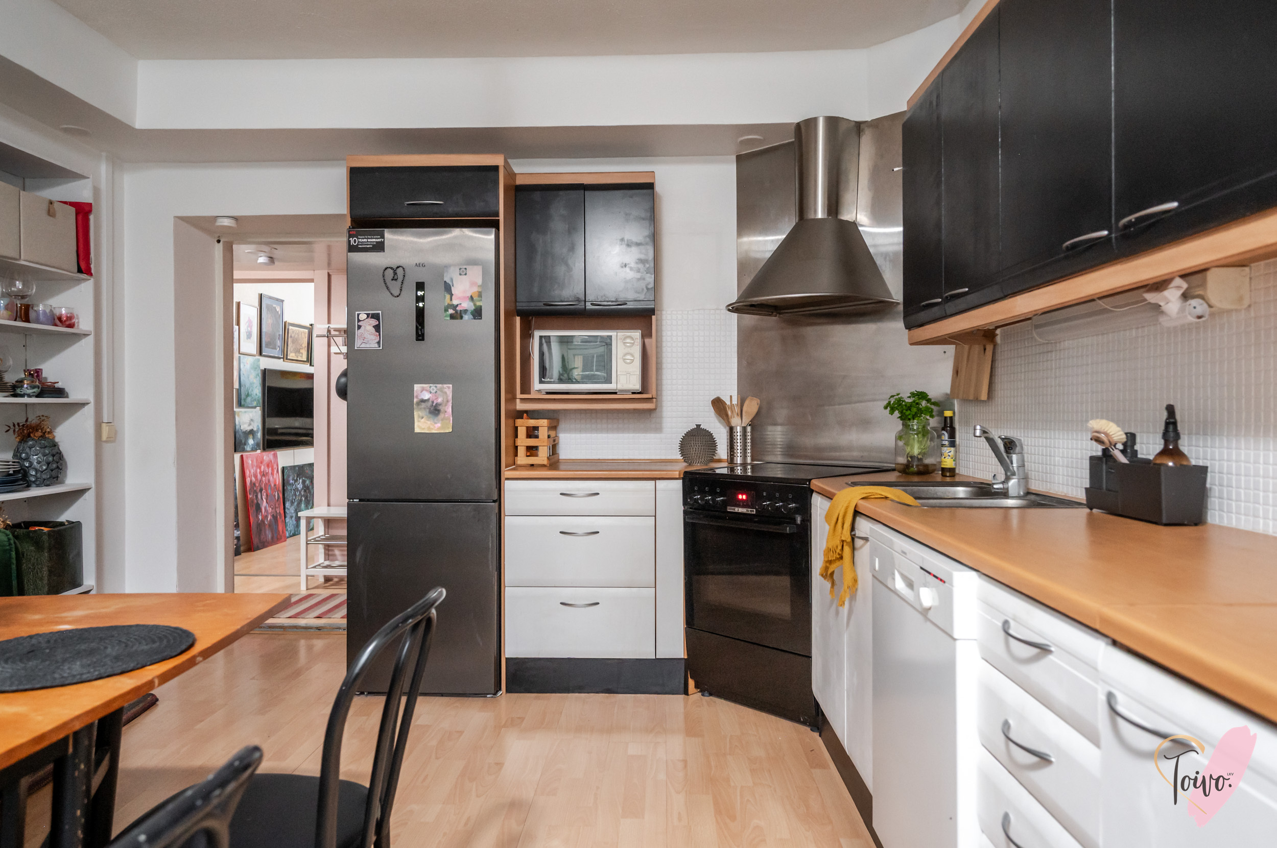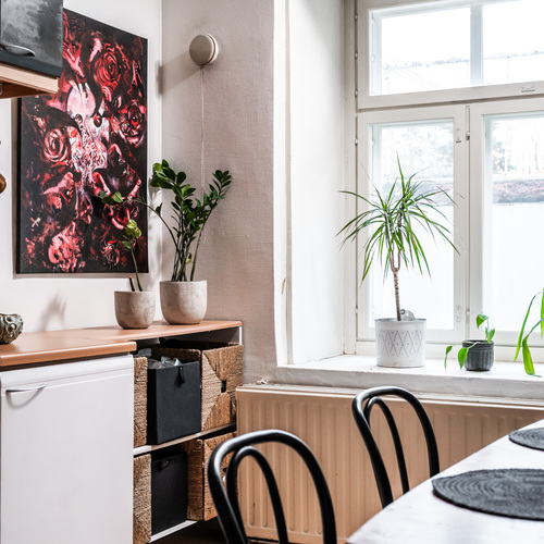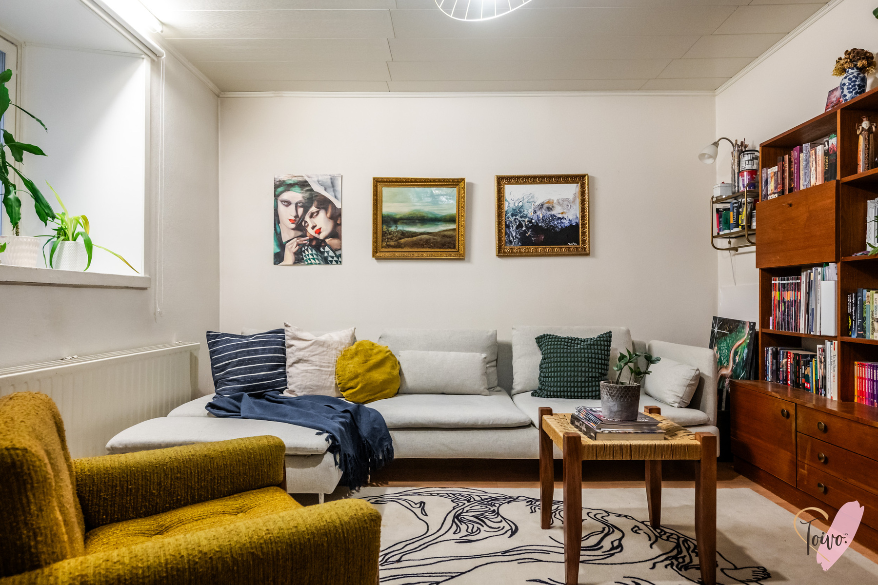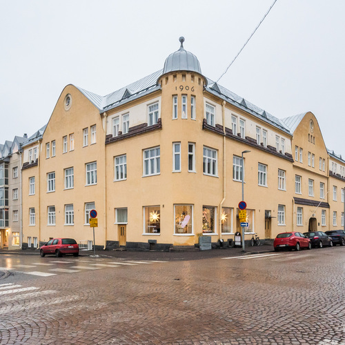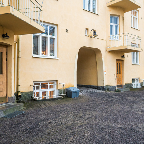 Vuonna 1906 valmistunut Tuomitalo kantaa yli satavuotista tarinaansa kauniisti ja henkii ajankuvaa, jota ei voi rakentaa uudelleen. Tämä kellarikerroksen tilava kaksio kätkee sisäänsä tunnelman, joka rauhoittaa heti kynnyksen ylittäessä. Eteinen vastaanottaa lempeästi ja ohjaa kulkijan ensin makuuhuoneeseen, jossa reilut kaapistot ja oma sisäänkäynti kylpyhuoneeseen tuovat arkeen helppoutta ja sujuvaa rytmiä. Makuuhuoneen tunnelma on seesteinen ja hiljainen, aivan kuin seinät kantaisivat menneiden aikojen rytmiä.