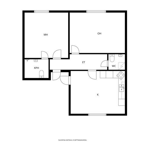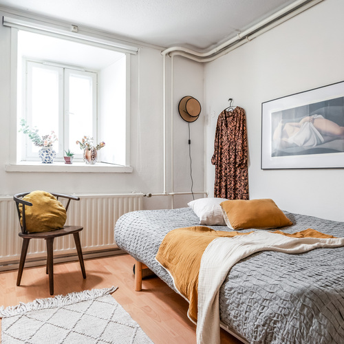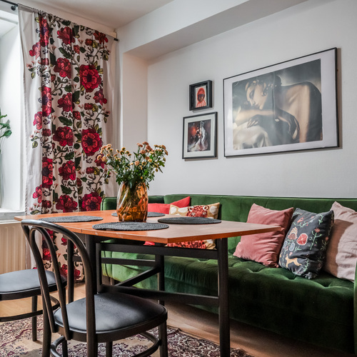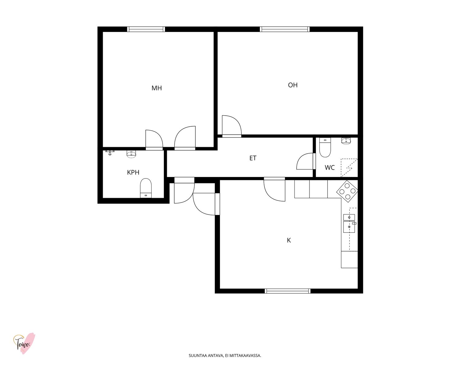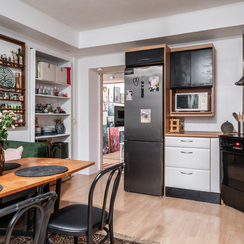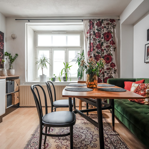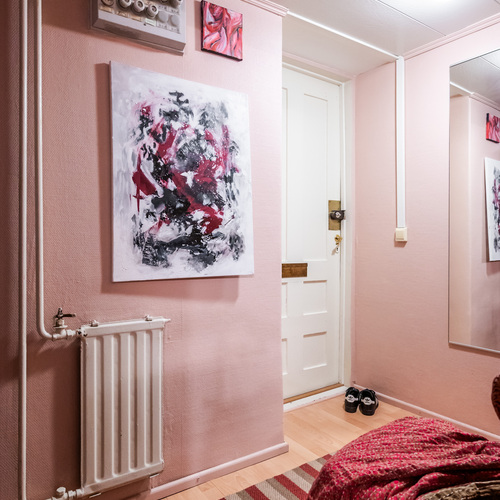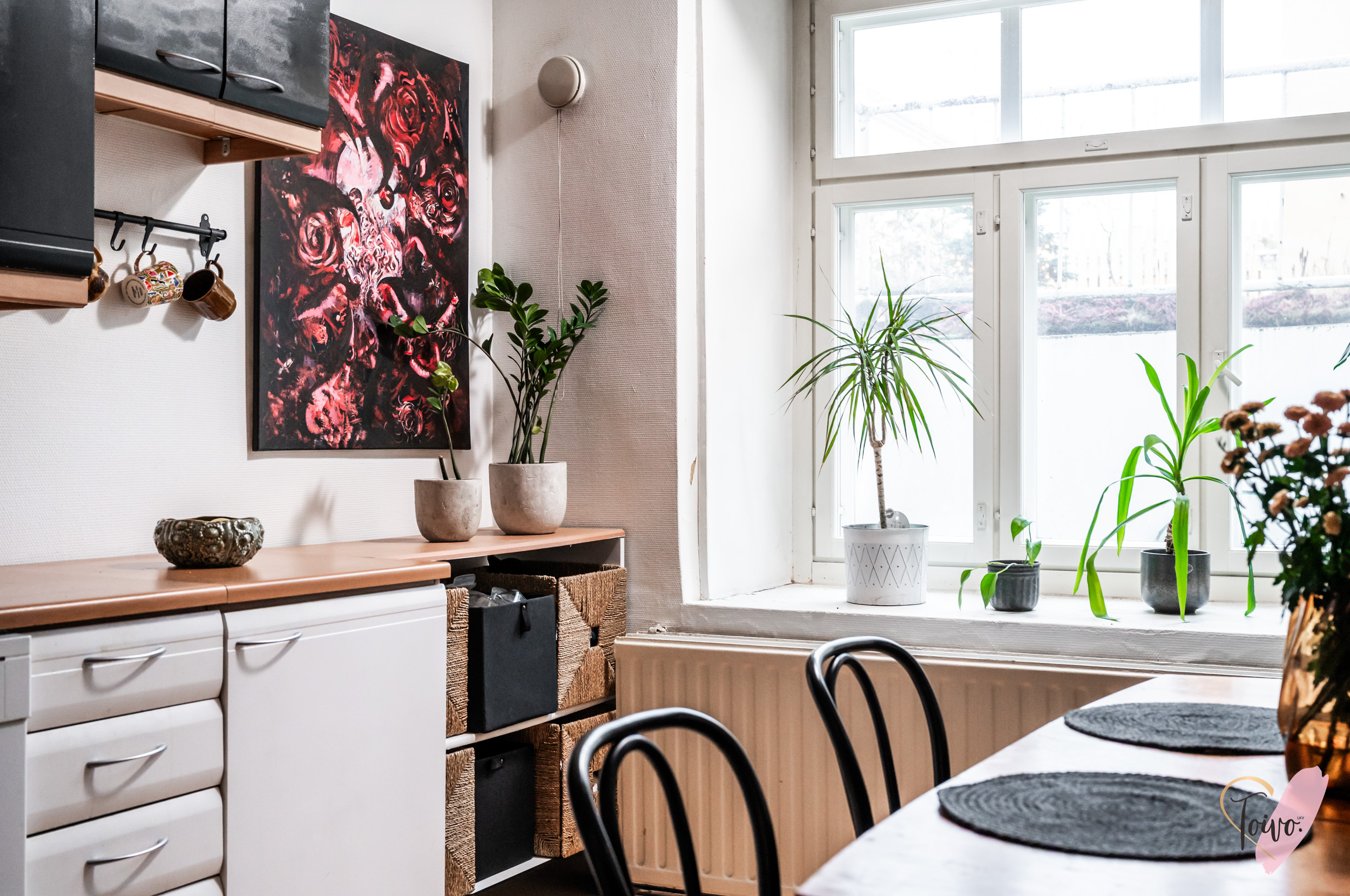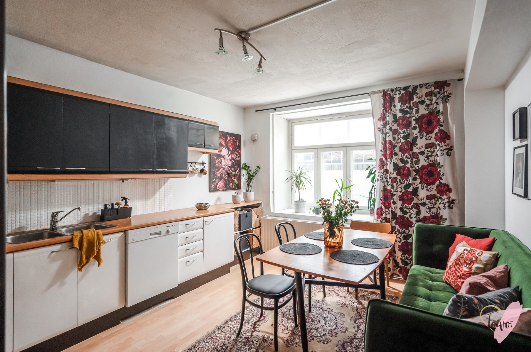 Vuonna 1906 valmistunut Tuomitalo kantaa yli satavuotista tarinaansa kauniisti ja henkii ajankuvaa, jota ei voi rakentaa uudelleen. Tämä kellarikerroksen tilava kaksio kätkee sisäänsä tunnelman, joka rauhoittaa heti kynnyksen ylittäessä. Eteinen vastaanottaa lempeästi ja ohjaa kulkijan ensin makuuhuoneeseen, jossa reilut kaapistot ja oma sisäänkäynti kylpyhuoneeseen tuovat arkeen helppoutta ja sujuvaa rytmiä. Makuuhuoneen tunnelma on seesteinen ja hiljainen, aivan kuin seinät kantaisivat menneiden aikojen rytmiä.