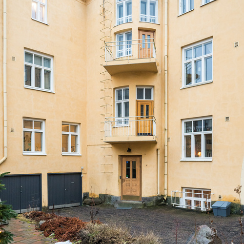 2020 alkuperäisen, entisöidyn portin asennus, Kajaaninkadun puoleisen parioven ulkopinnan kunnostus, piharakennuksen katon pinnoitus, ullakon kolmioikkunoiden restaurointi.
