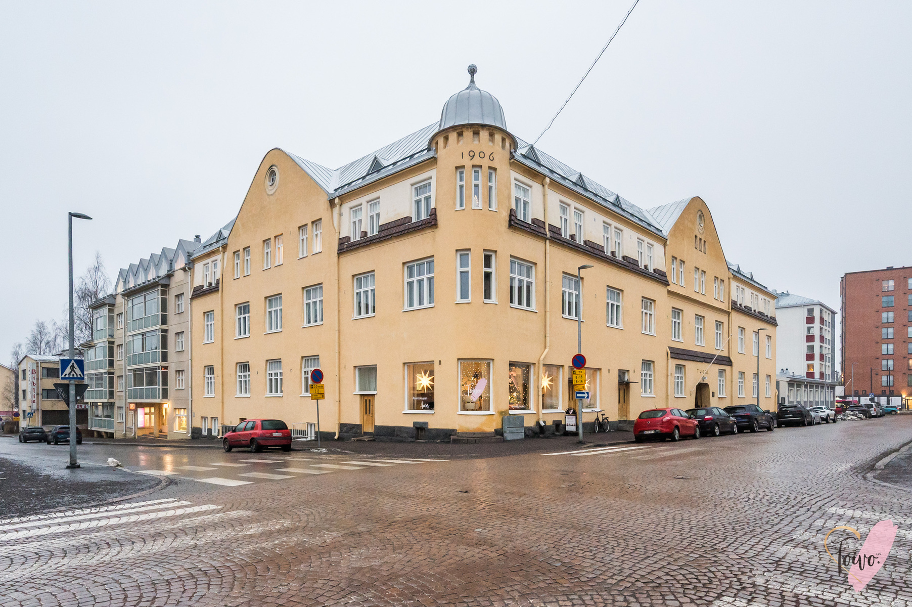 Kajaaninkadun sijainti aivan keskustan kainalossa tekee ympäristöstä elävän ja helpon. Rotuaari, Valkea, torinrannan tunnelma ja jokivarren ulkoilureitit ovat vain kävelymatkan päässä. Alueella liikut sujuvasti niin kävellen, pyörällä kuin julkisilla.