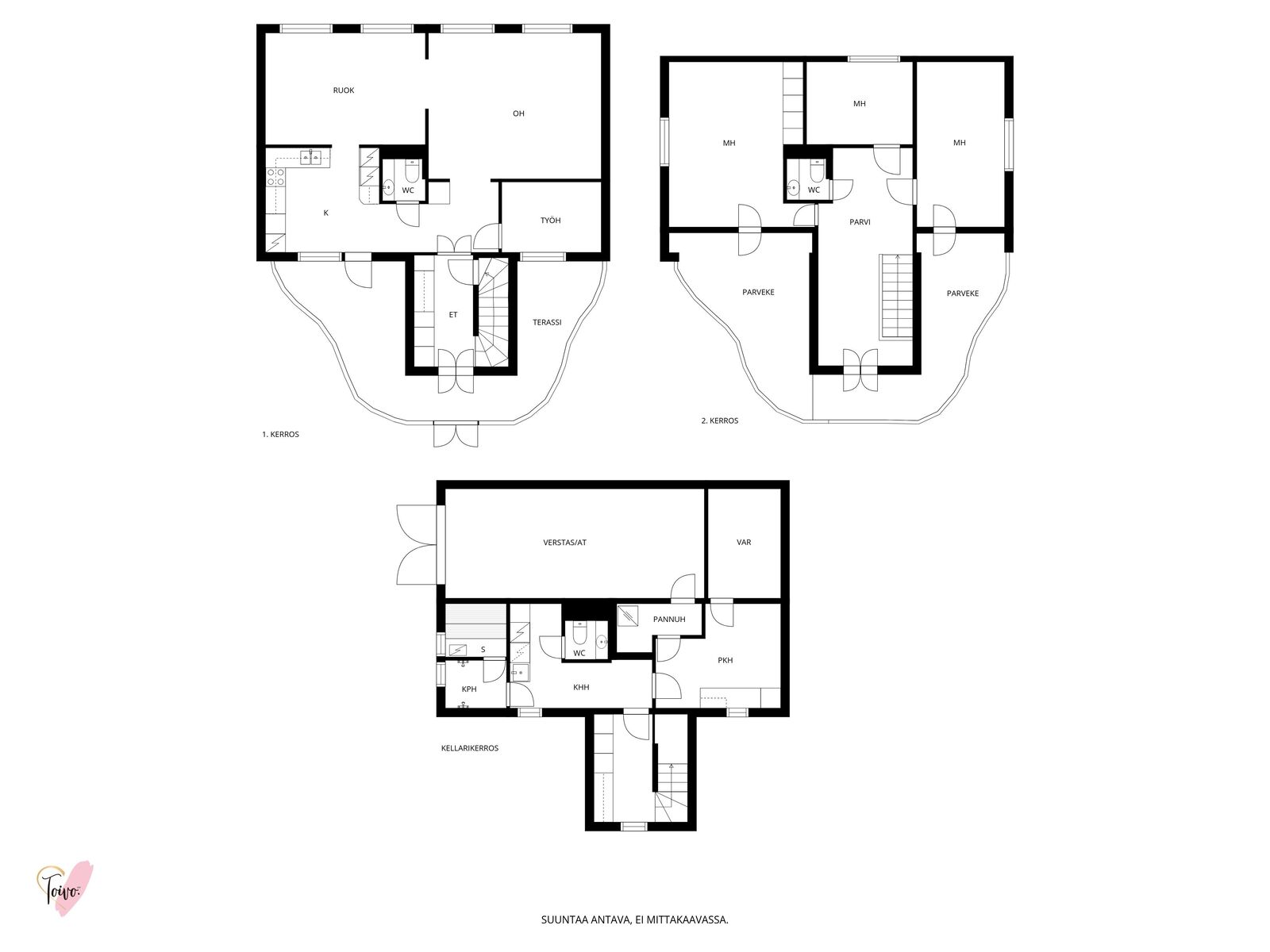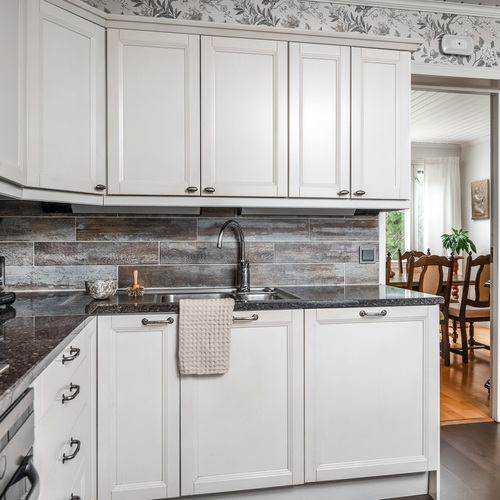 Keskikerroksessa pieni lisähuone ja erillinen wc johdattavat sinut kodin sydämeen eli suureen oleskelutilaan, jonka tunnelma kutsuu viihtymään – oli kyse sitten perheen yhteisestä illasta tai ystäväporukan juhlahetkestä. Olohuone jatkuu erilliseen ruokailutilaan ja kodikkaaseen keittiöön, jossa ruoan tuoksu ja puun lämpö kietoutuvat yhteen. Tämä kerros on tehty yhteisille illanvietoille, naurulle ja tarinoille.
