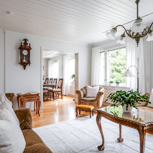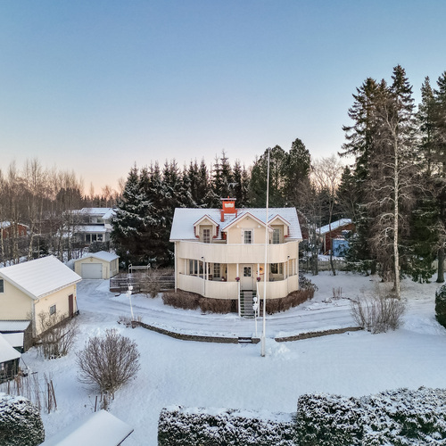 Tämä koti tarjoaa hienot puitteet asumiseen suuremmallekin porukalle erinomaista sijaintia unohtamatta. Aivan tontin vieressä on kaunis uimaranta ja lähikaupat, koulut sekä päiväkodit sijaitsevat lyhyen kävelymatkan päässä. Rauhallisesta tunnelmasta huolimatta keskustaankin on vain muutama kilometri.