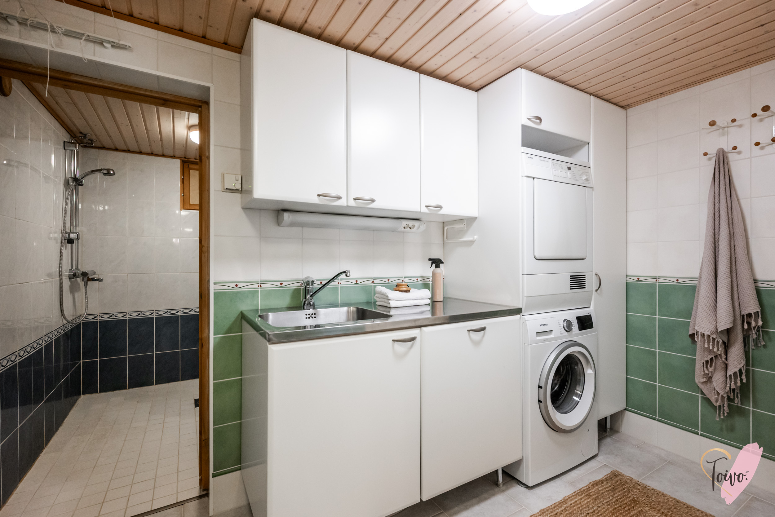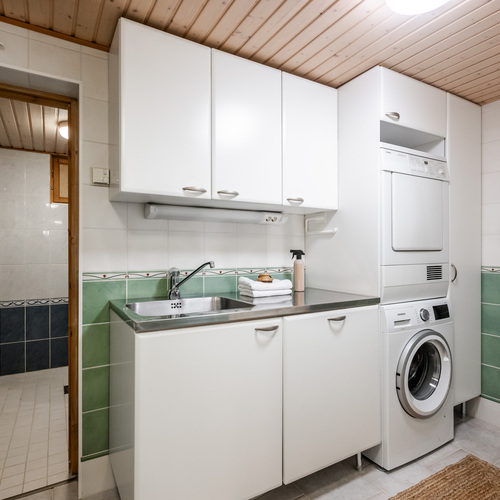 Varusteet: pesukoneliitäntä, lattialämmitys, lattiakaivo, pöytätaso