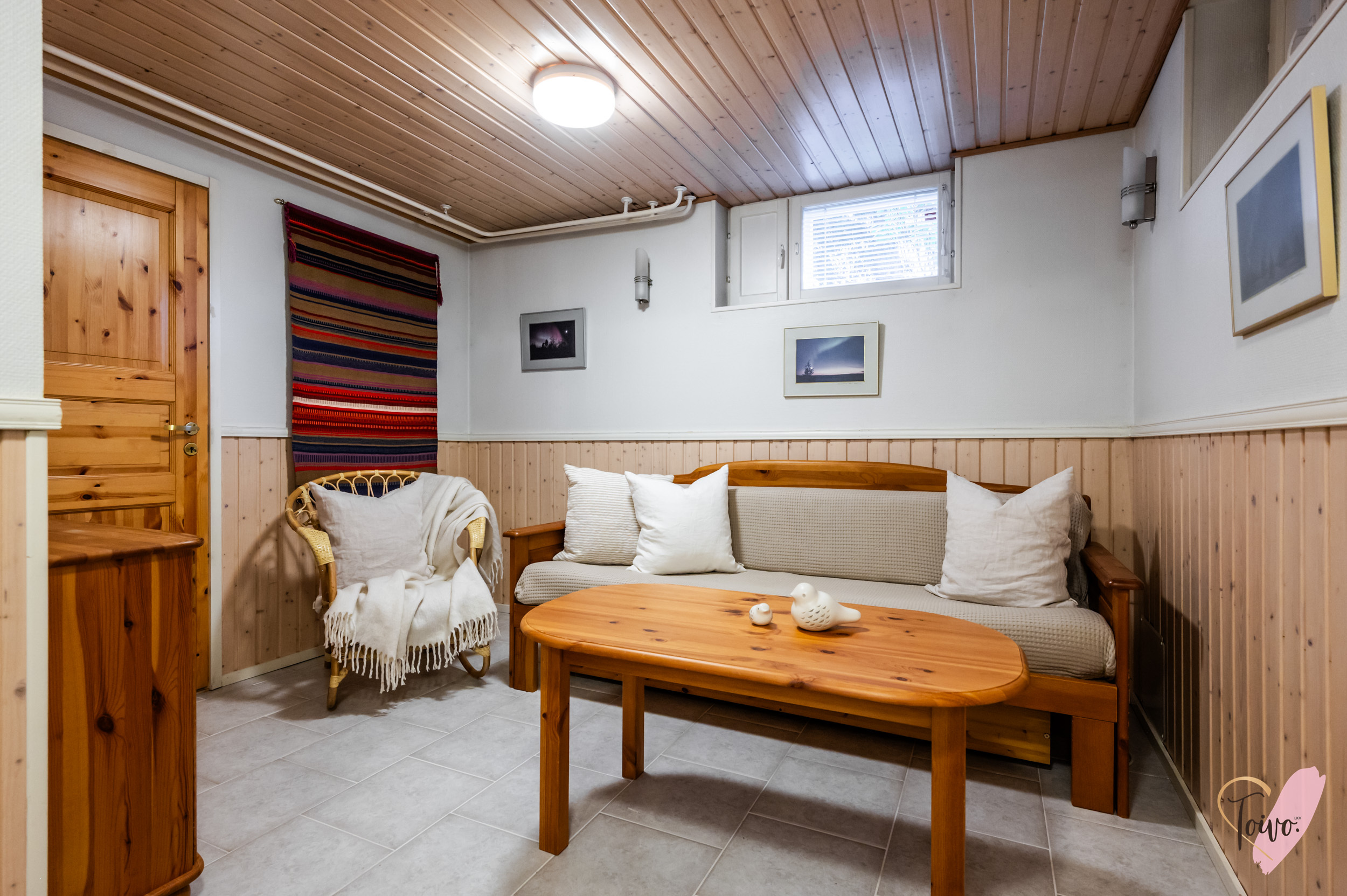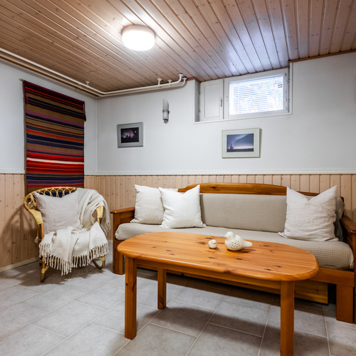 Kellarikerros on oma maailmansa, jossa kiire unohtuu. Tunnelmallinen sauna ja kylpytilat tarjoavat täydelliset puitteet rentoutumiseen. Kylpyhuoneen läheisyydestä löytyy myös käytännöllinen kodinhoitotila ja erillinen wc. Lisäksi kellarissa on erillinen huone esimerkiksi työ- tai harrastetilaksi ja runsaasti varastotilaa.