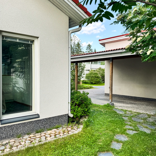 Täällä luonnon helmassa, omalla tontillaan puistoalueen laidalla kohoaa kauniisti kivitalo, joka odottaa juuri sinua. Koti huokuu täydellistä omaa rauhaa ja tilaa sijaiten erinomaisten kulkuyhteyksien päässä kaupungin kaikista palveluista.