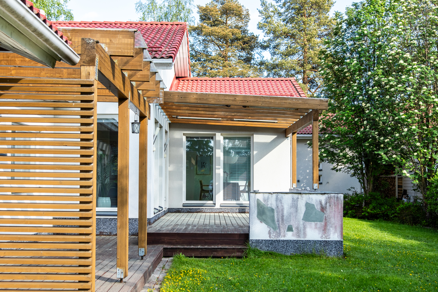 2020 Pihan perusparannus: reunakivetykset, nurmikko ja istutukset uusittu, asennettu uudet pihavalaisimet. Autotalliin asennettu uusi ovi.