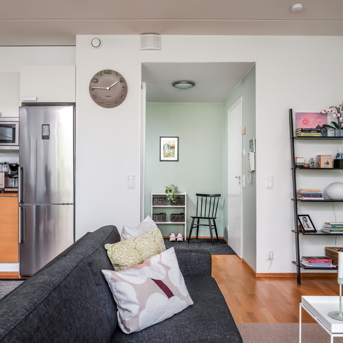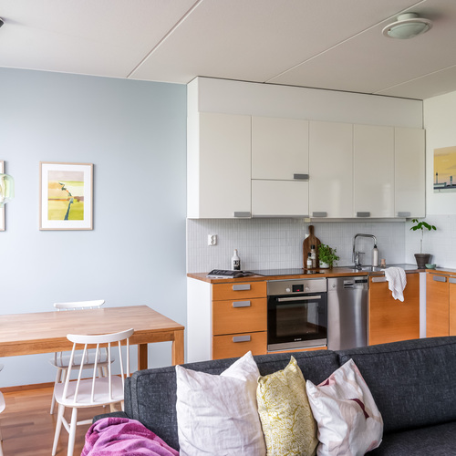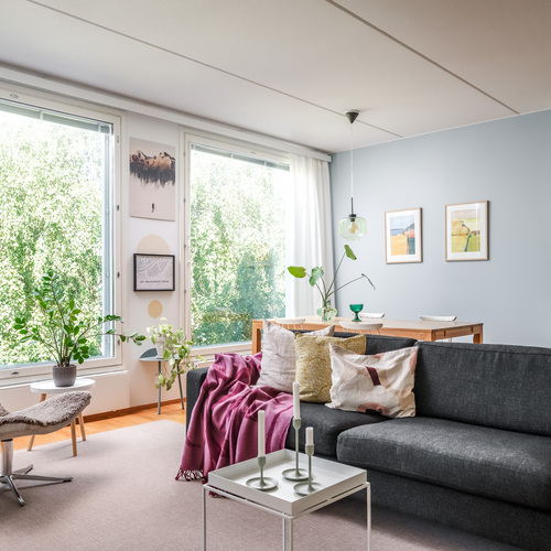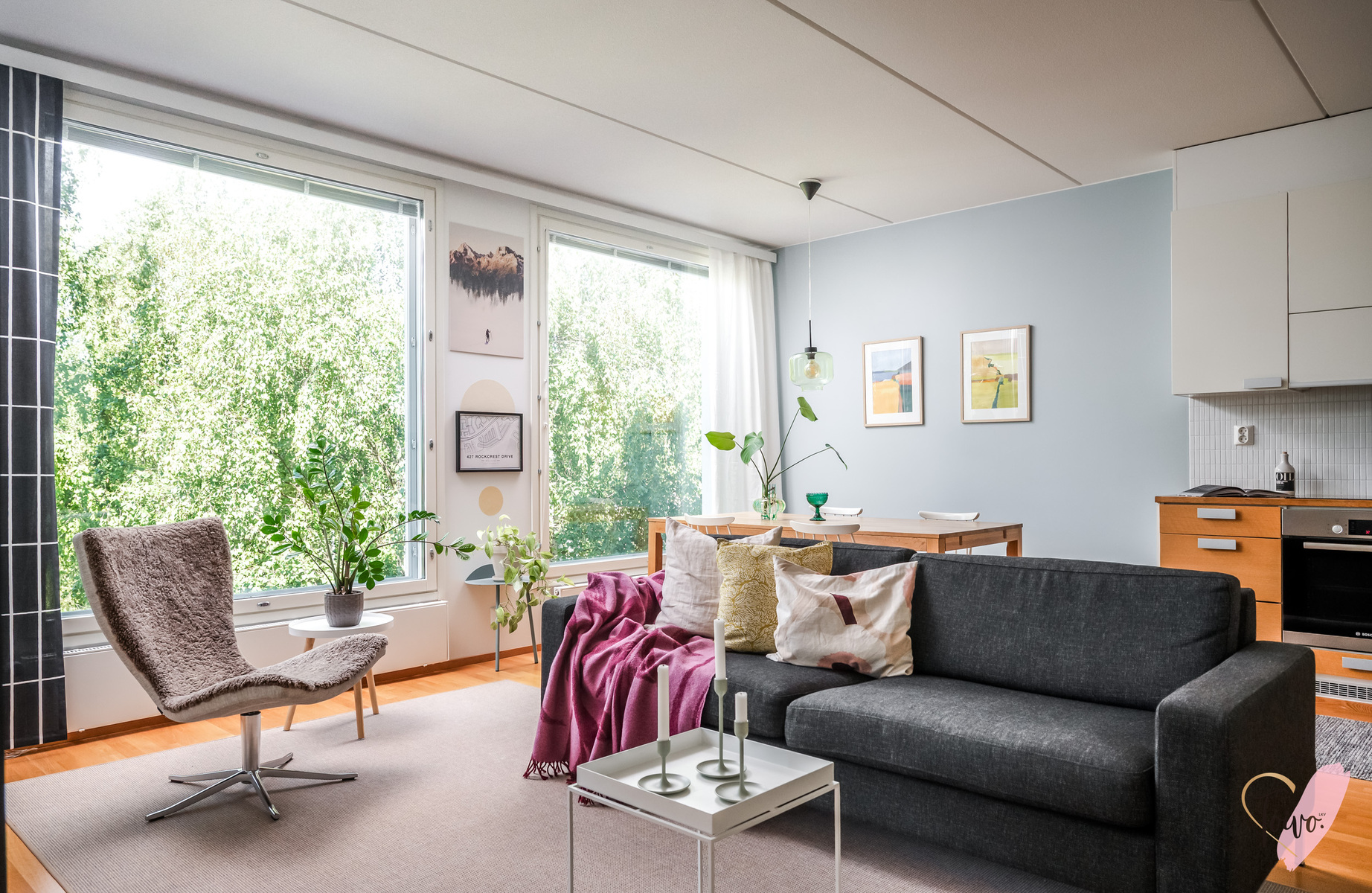Tämä upea, ylimmän kerroksen koti avaa edessäsi näkymät, joihin ei kyllästy. Neljännessä kerroksessa sijaitseva kaksio kietoo yhteen avaran tilan ja upean ympäristön. Suuret ikkunat kehystävät Tervaporvarinpuiston vehreyden ja avartuvat aina Hartaanselälle saakka. Tässä kodissa yhdistyvät valo, näkymät ja toimivuus tavalla, joka tekee siitä erityisen.