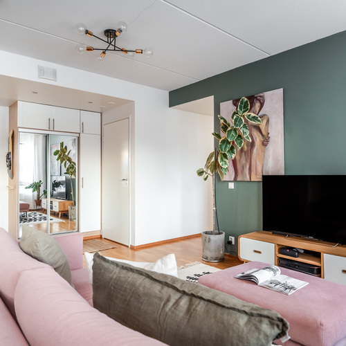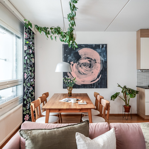 Tämä koti hurmaa tunnelmallaan ja sijainnillaan. Tässä yhdistyvät käytännöllisyys, valoisuus ja ripaus persoonallista tyyliä, juuri sopivassa suhteessa.