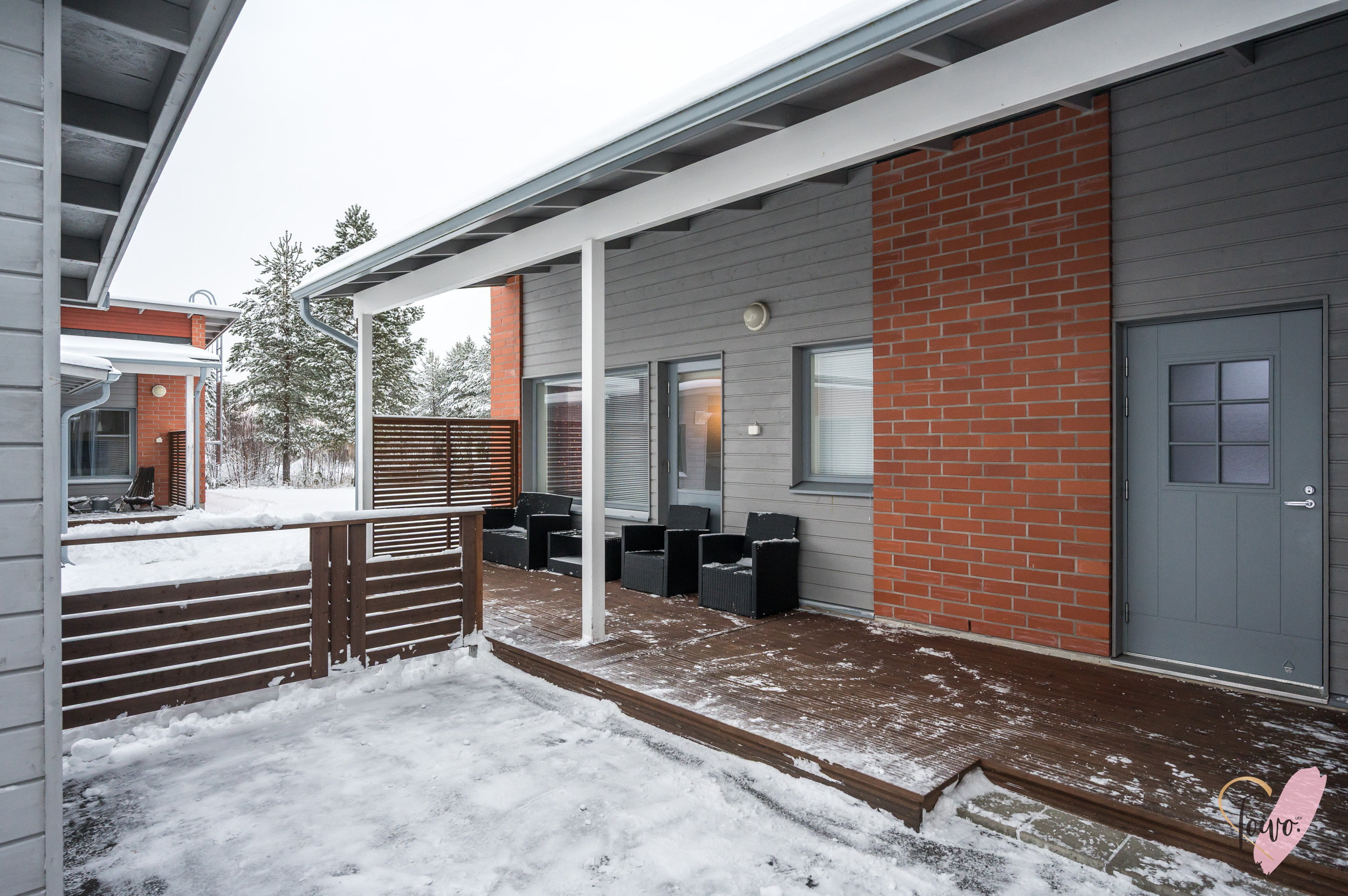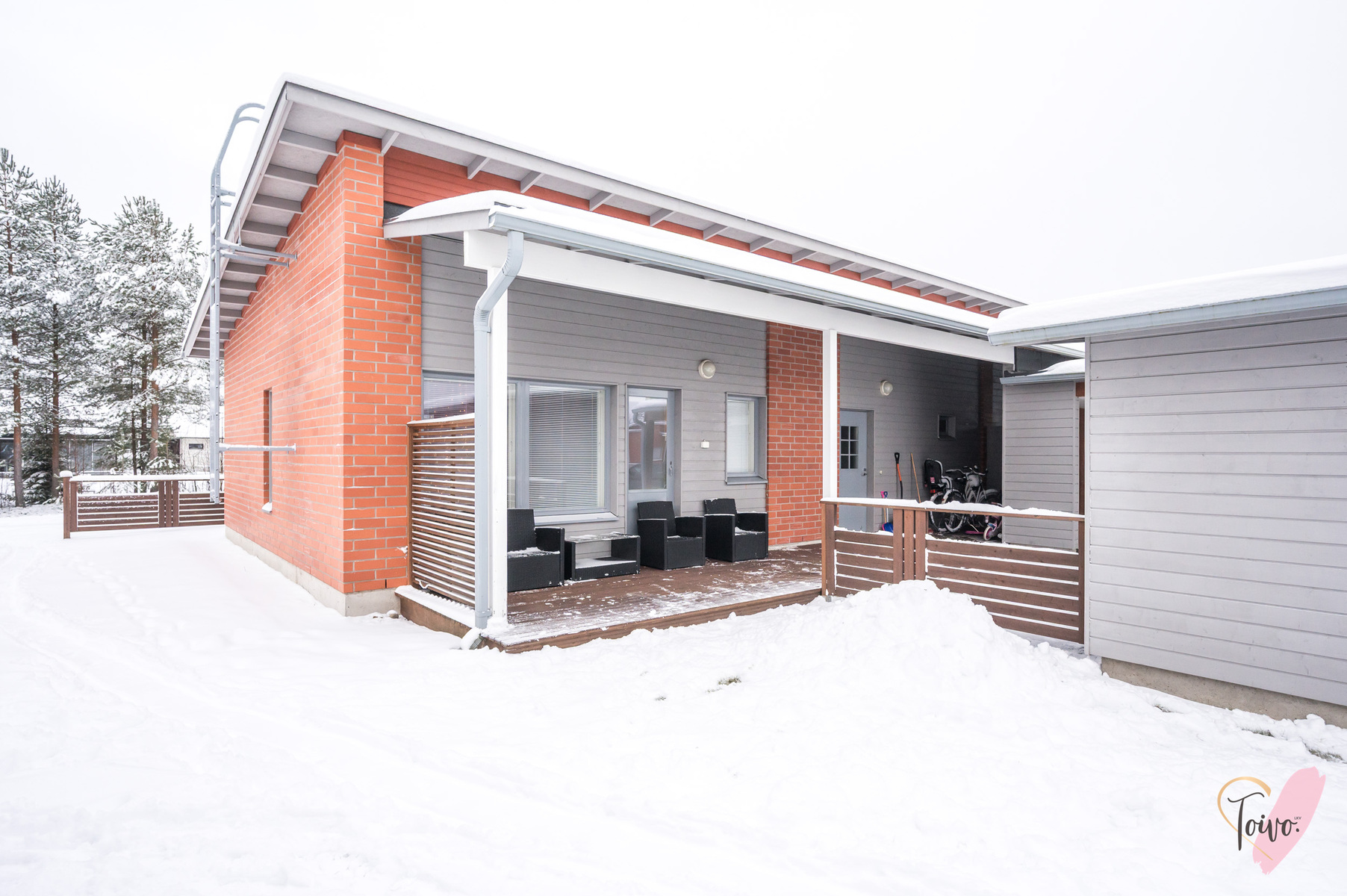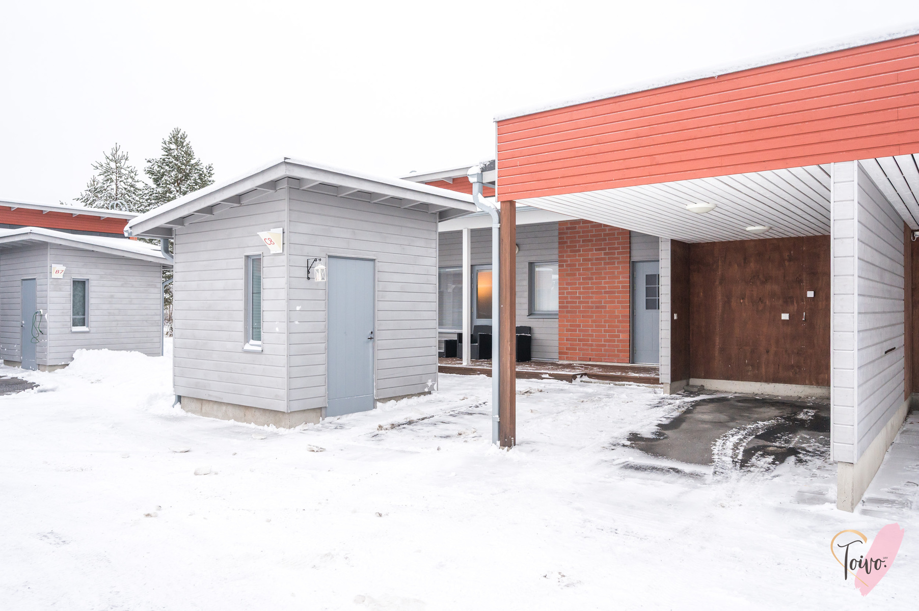 Sujuvan arjen viimeistelee huoneistolle kuuluva autokatos, joka sijaitsee huoneiston etupihan puolella sekä reilun kokoinen varasto.