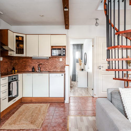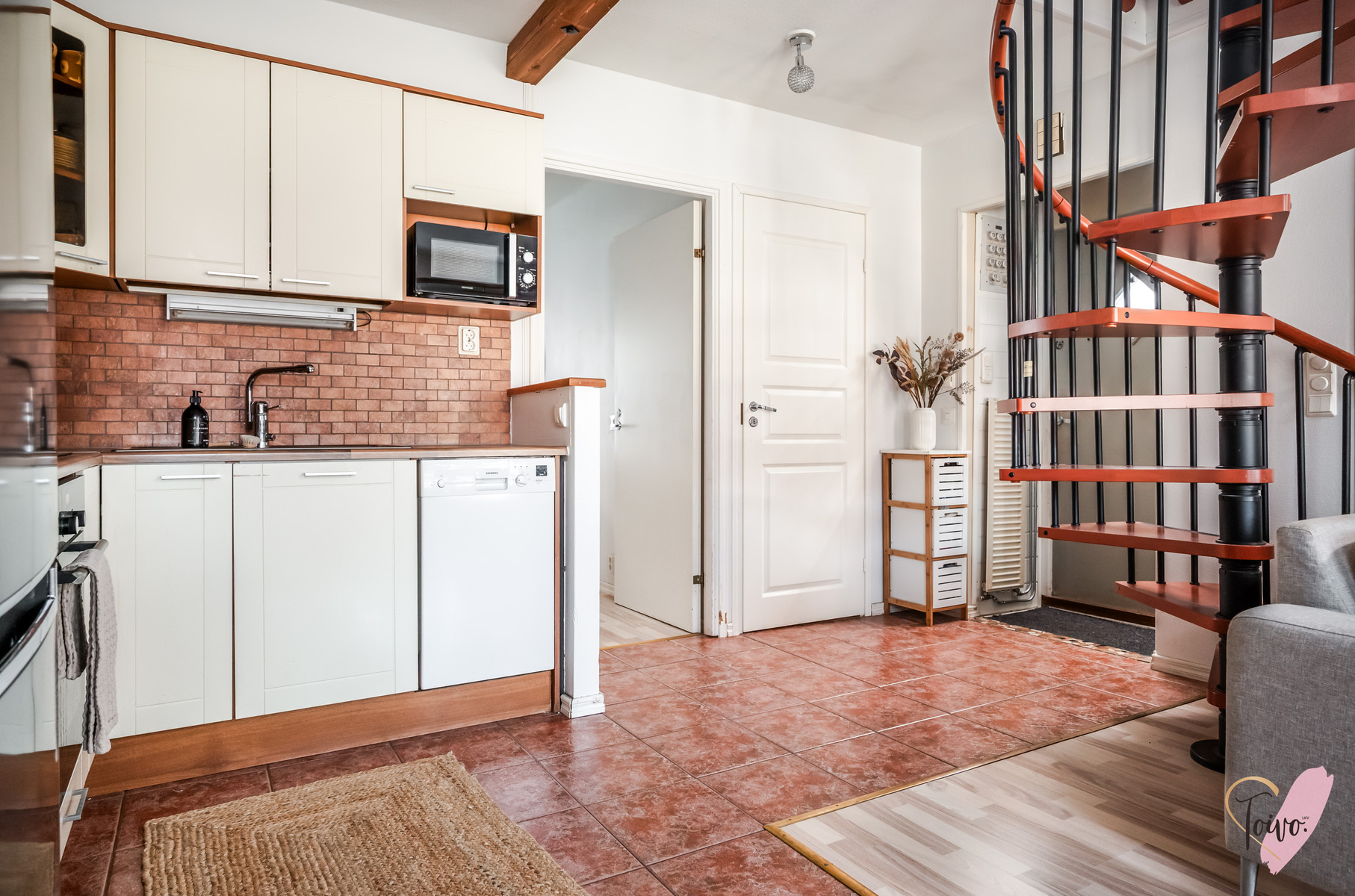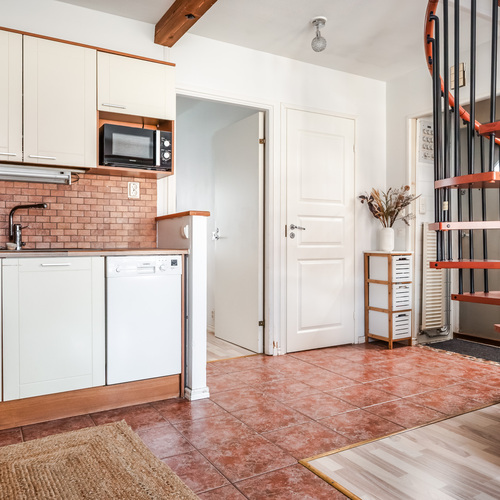 2003 huoneistoon on rakennettu noin 15 m² parvi, jonne johtaa kauniit kierreportaat. Näin alkuperäiseen huoneistoon on saatu kivasti lisäneliöitä.